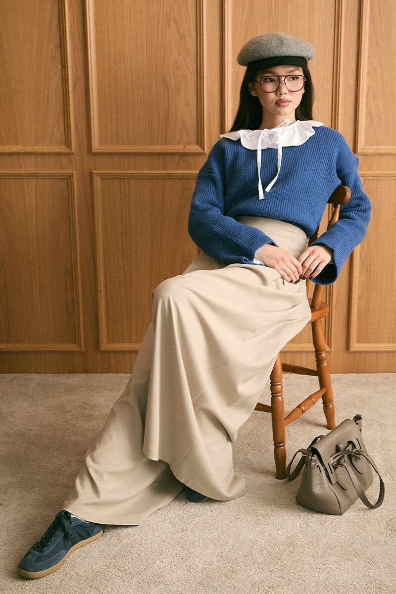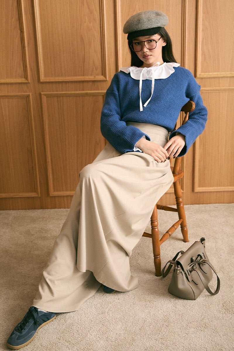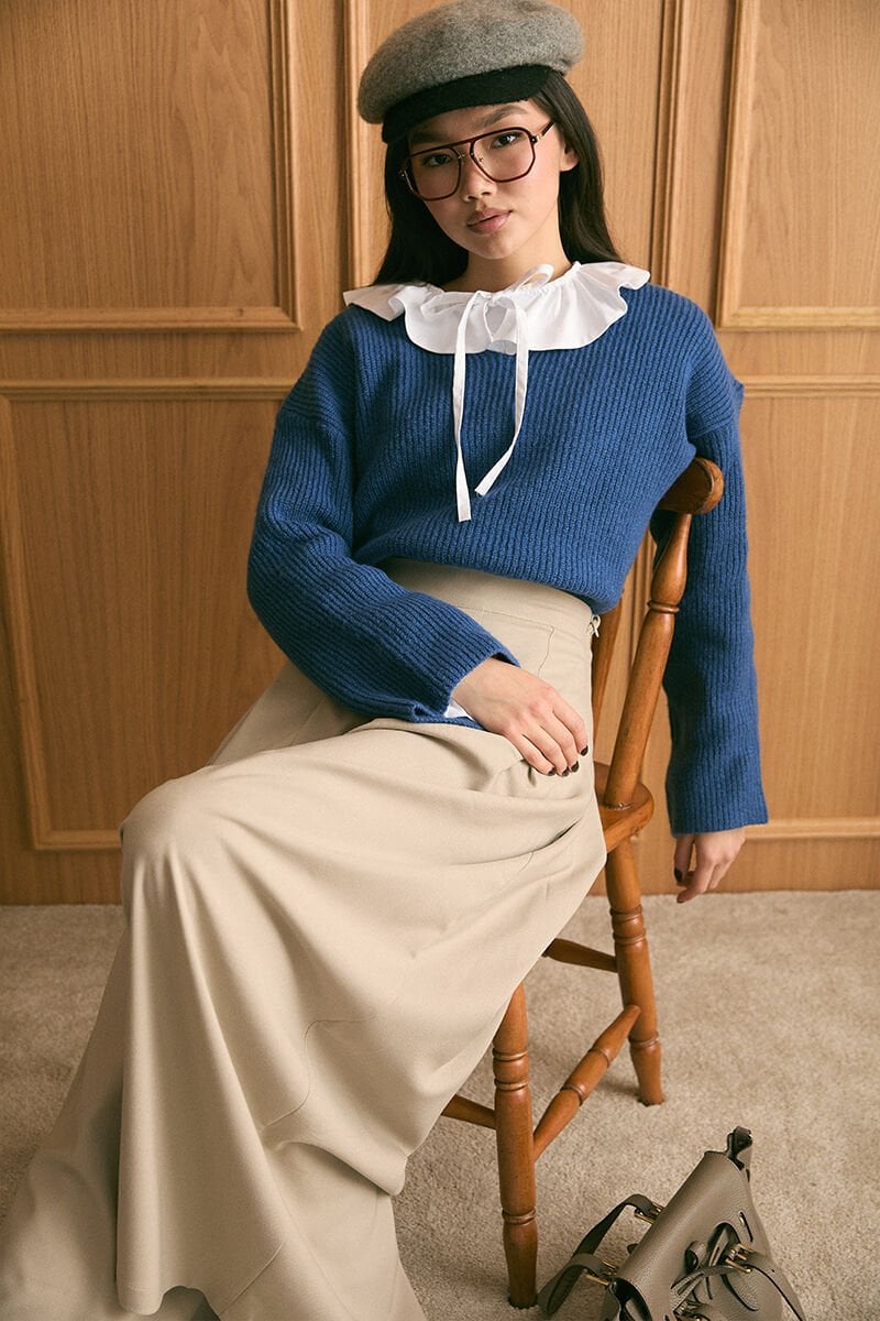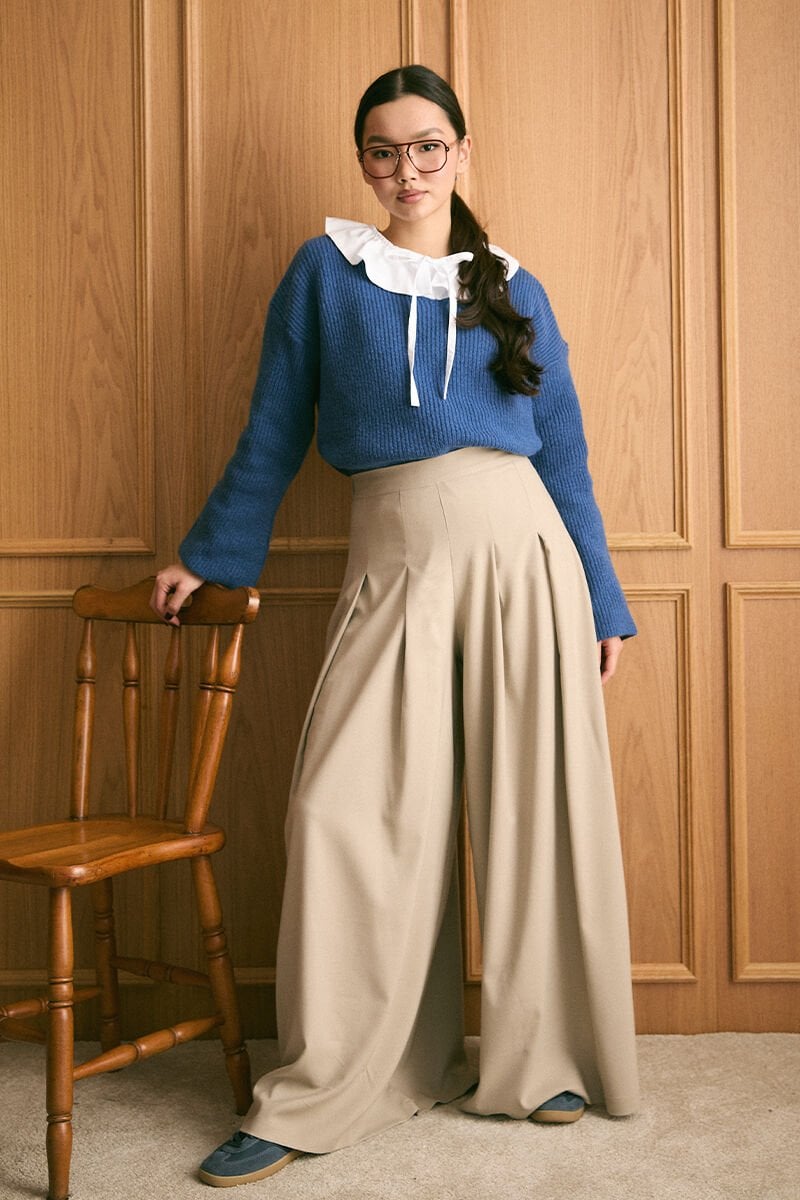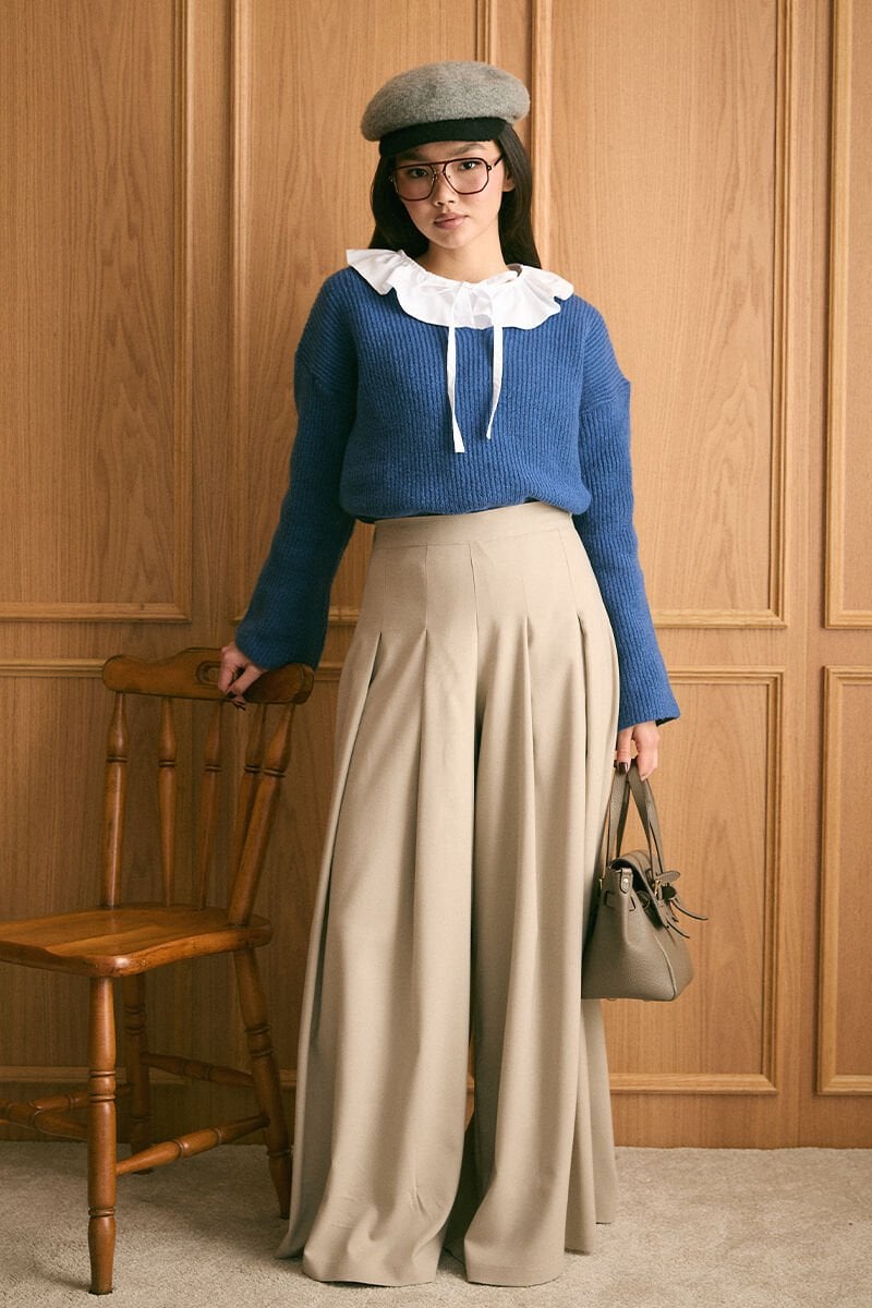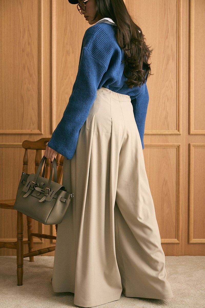 Mavi V Yaka Triko Kazak & Vizon Pile Detay Bol Paça Pantolon Takım