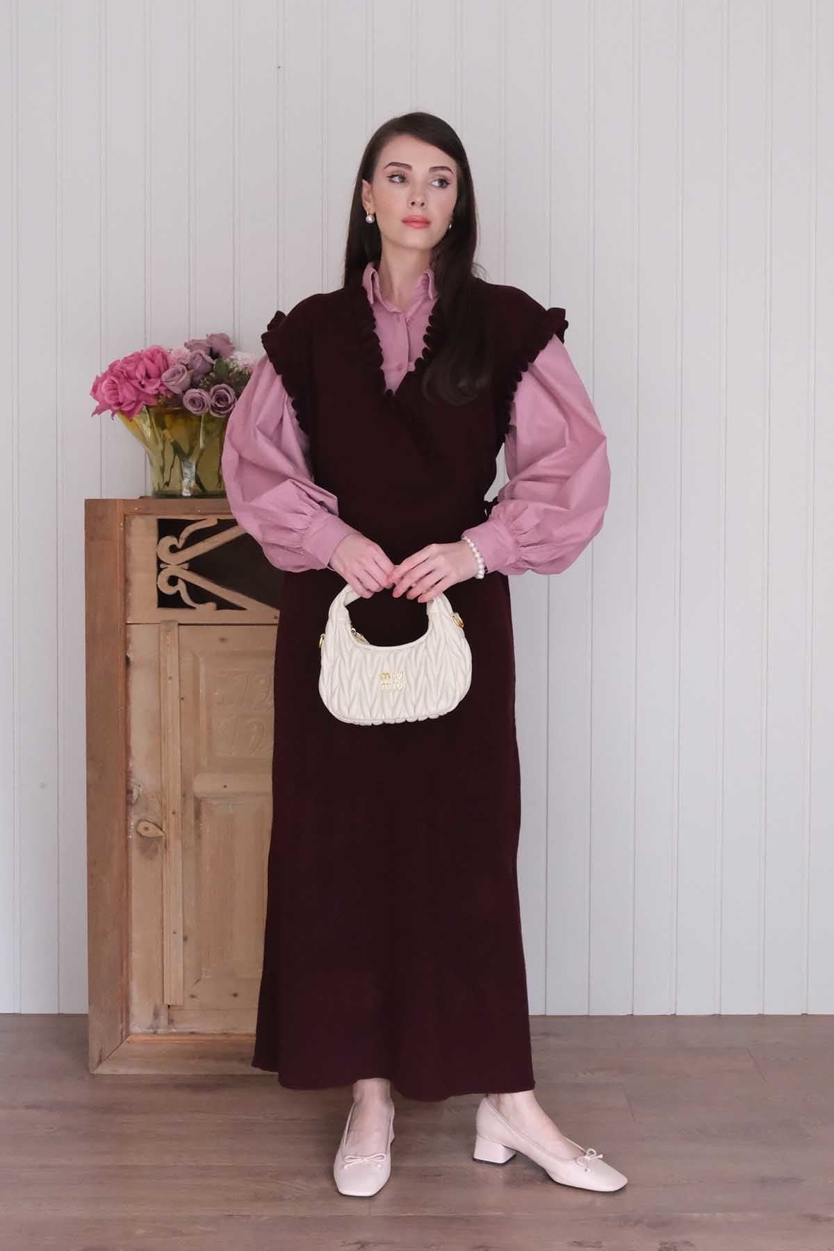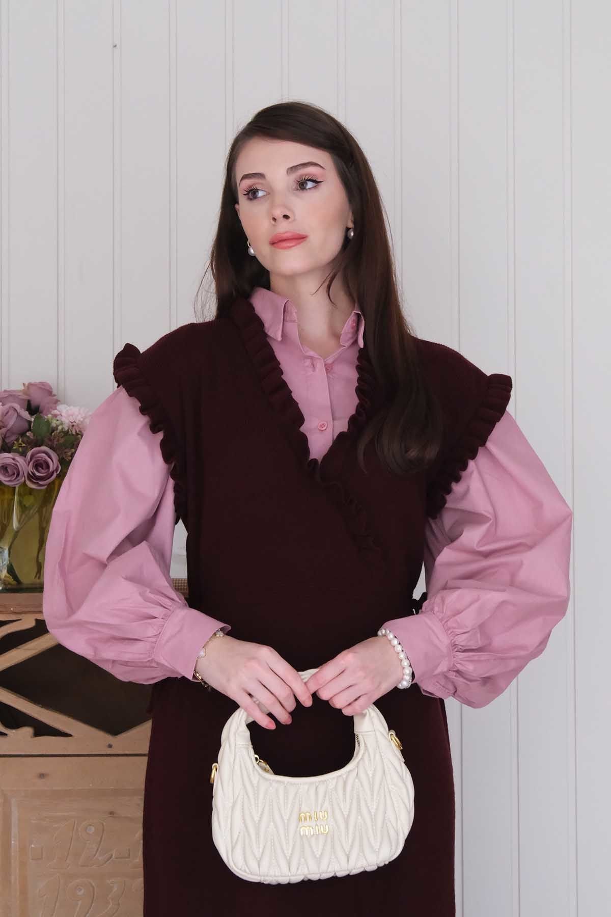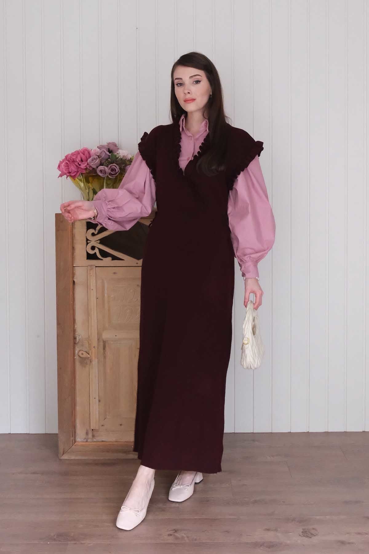 Mürdüm Triko Fırfır Yaka jile