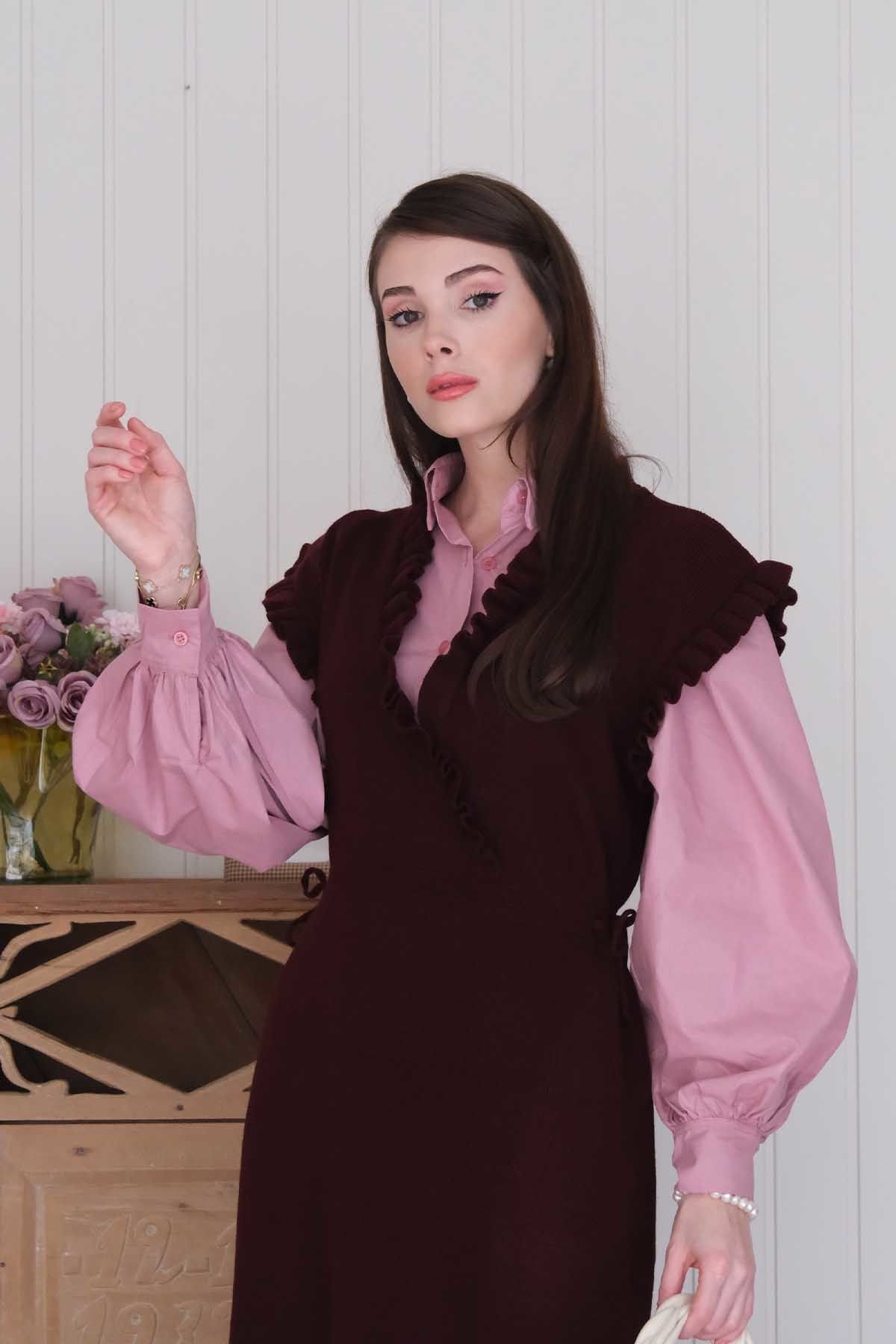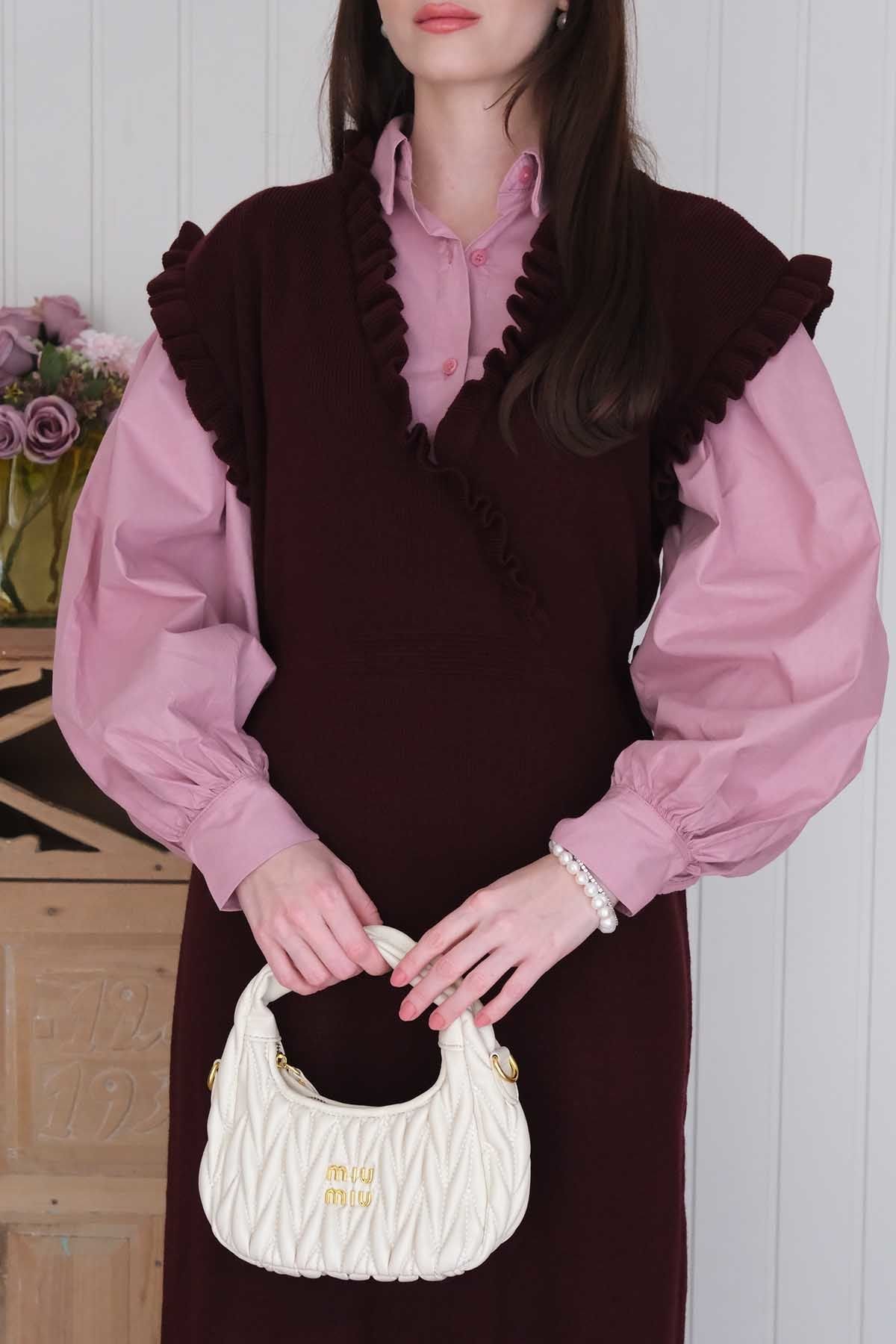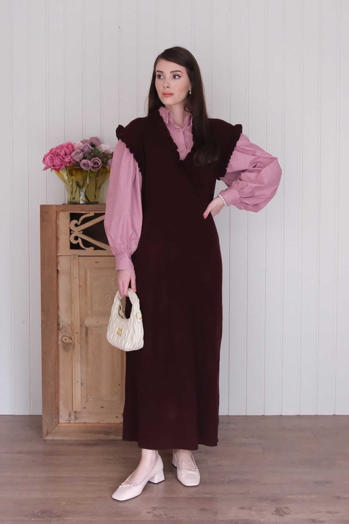 Mürdüm Triko Fırfır Yaka jile