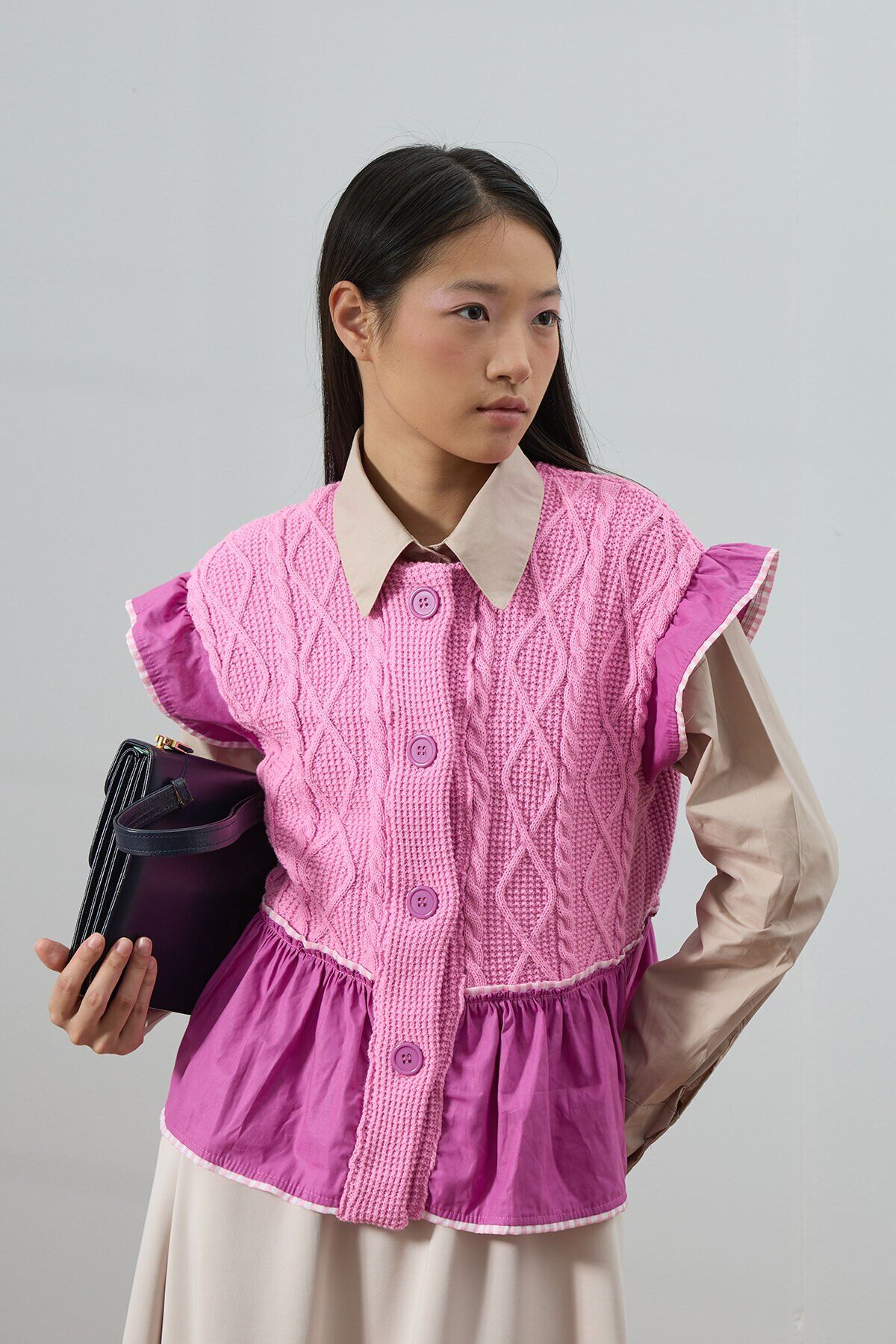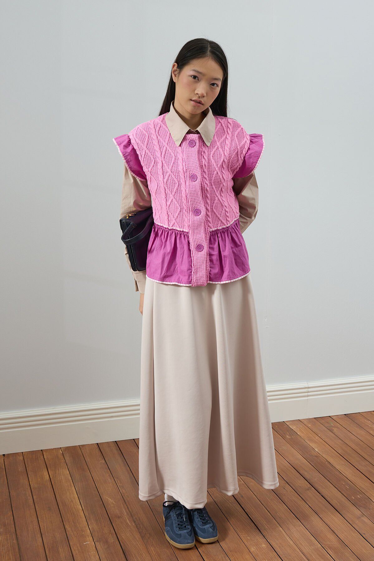 Pembe Fırfırlı Triko Yelek & Taş Scuba Etek Takım