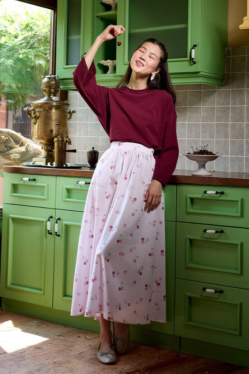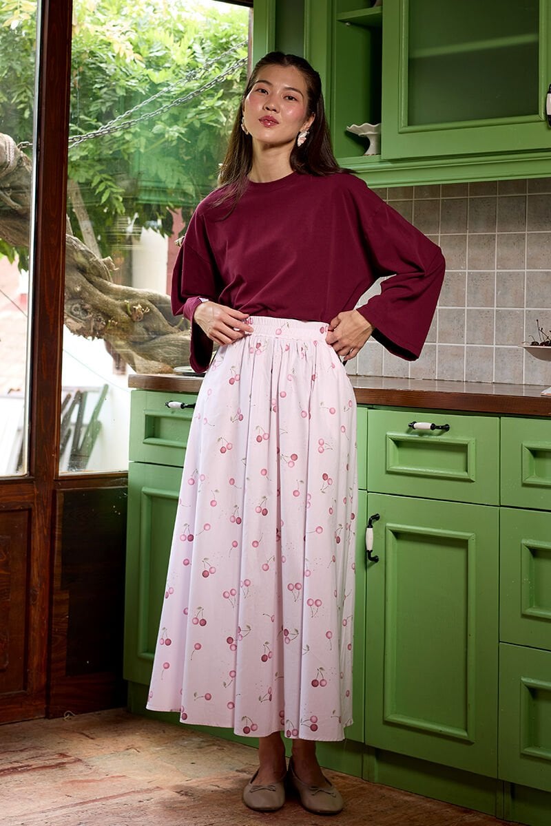 Pembe Kiraz Desen Balon Etek