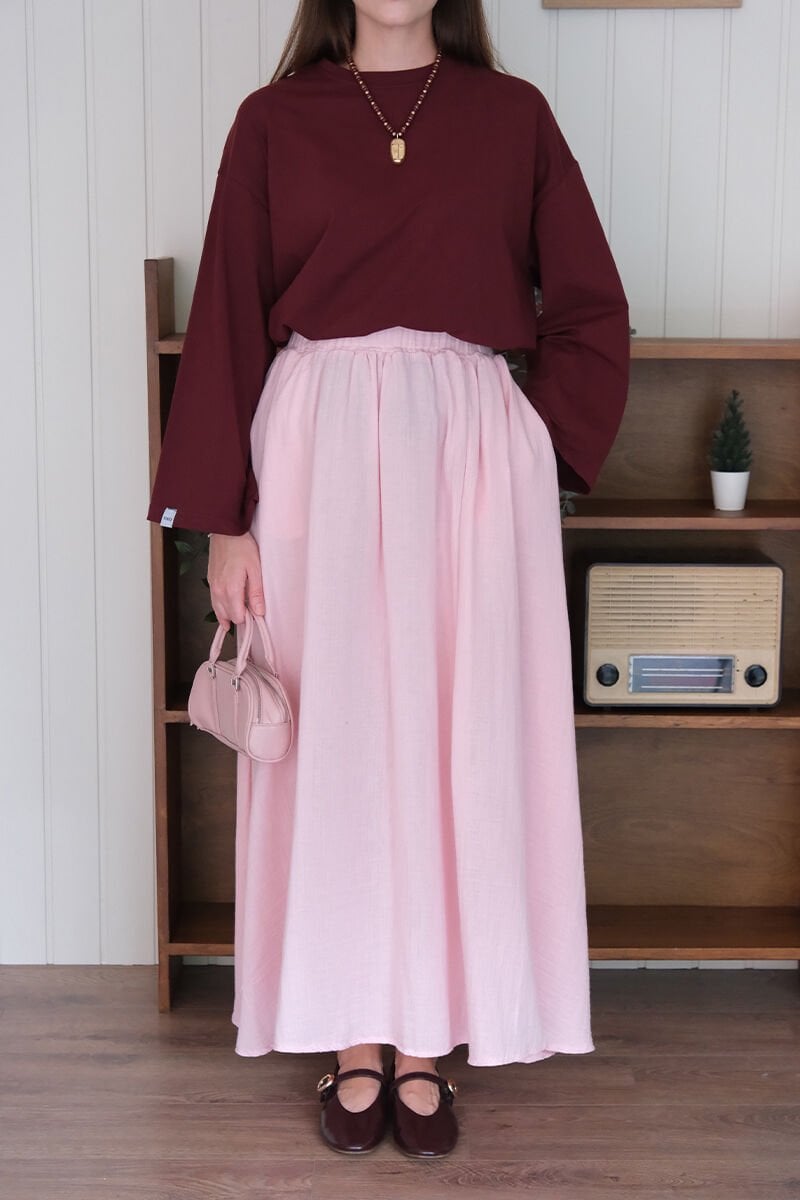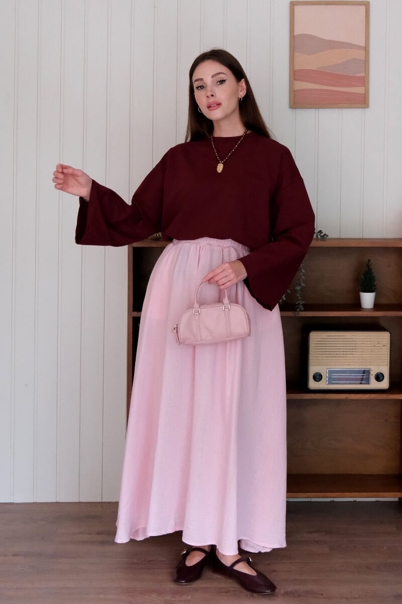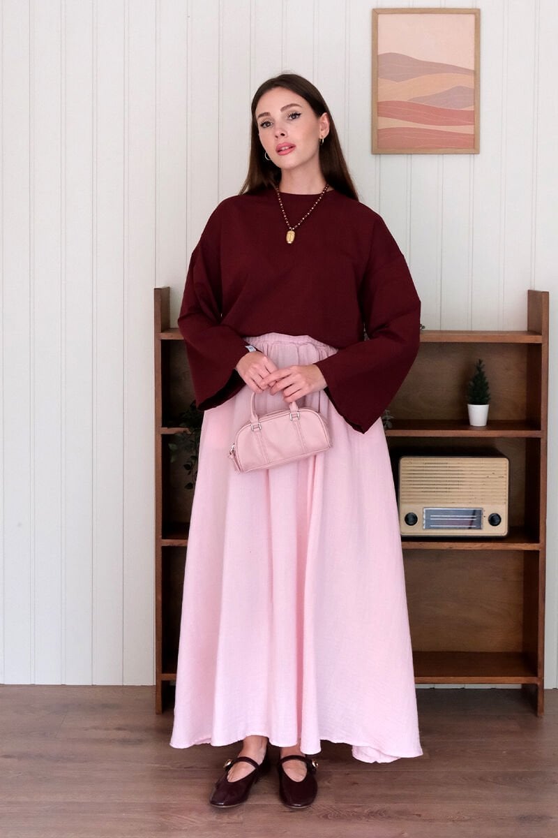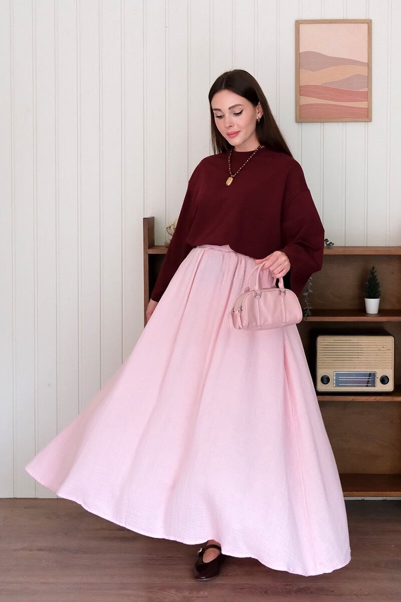 Pembe Müslin Balon Etek