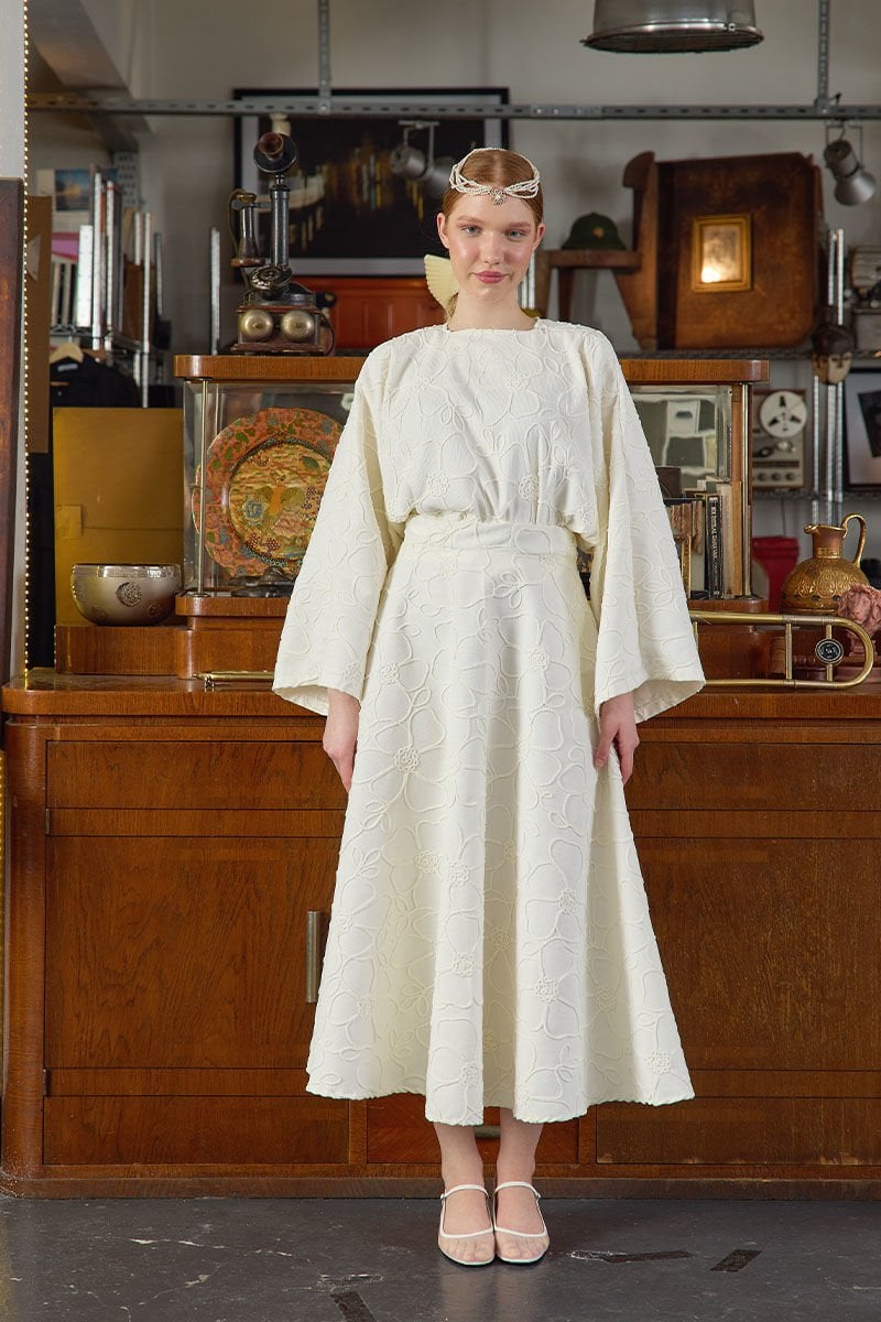Ekru Çiçek Detay Etek Takım