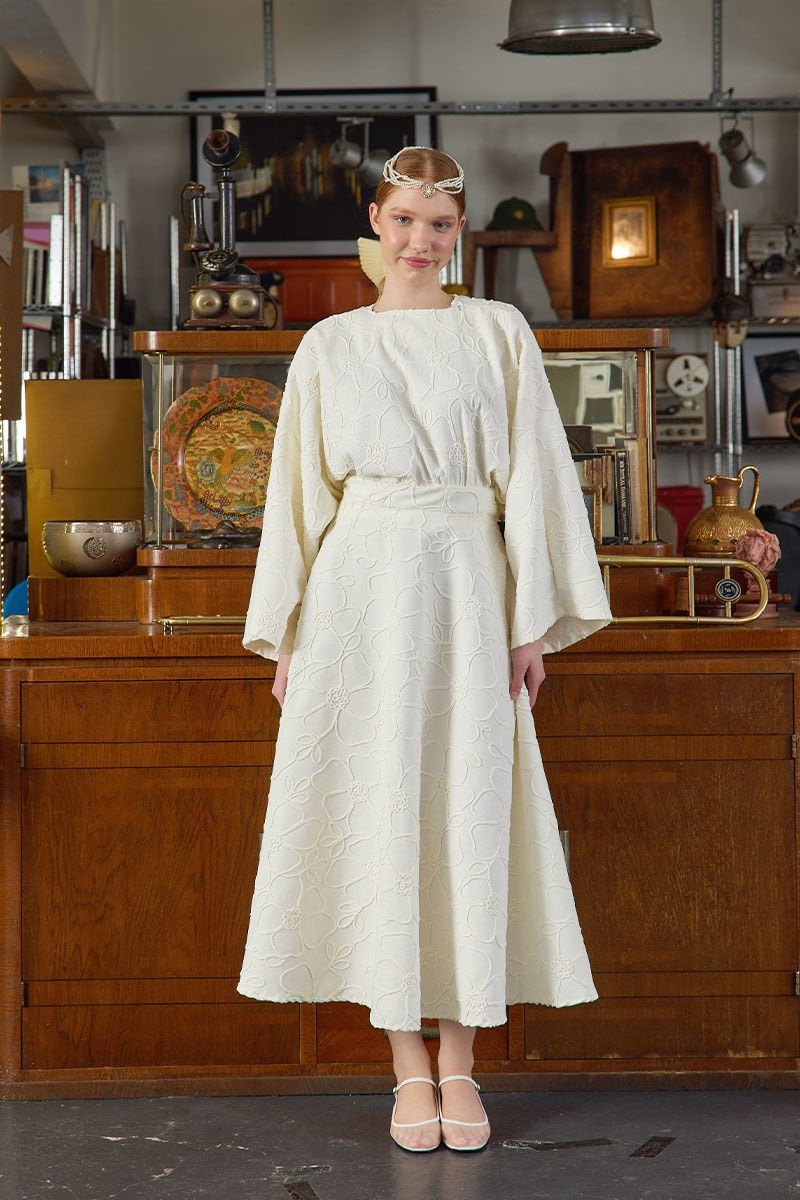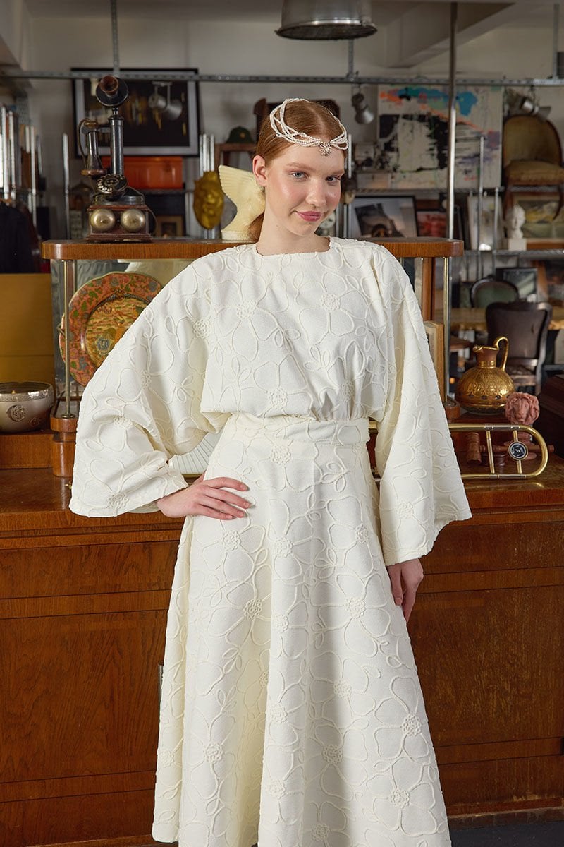 Ekru Çiçek Detay Etek Takım