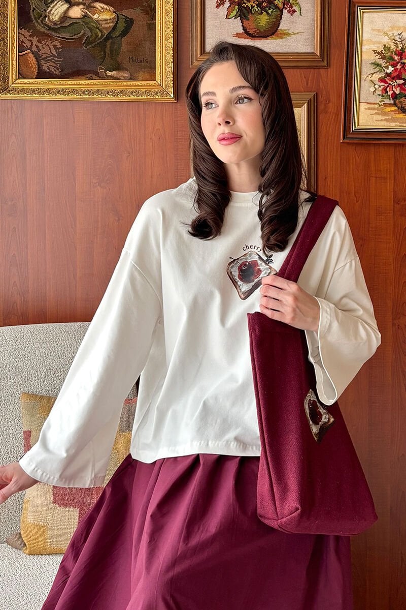 Ekru Reçel Baskılı Basic Body