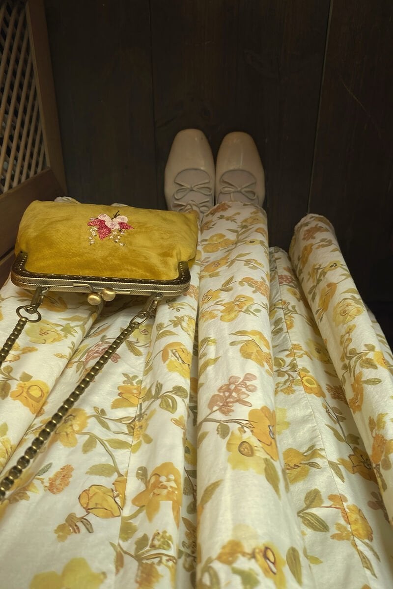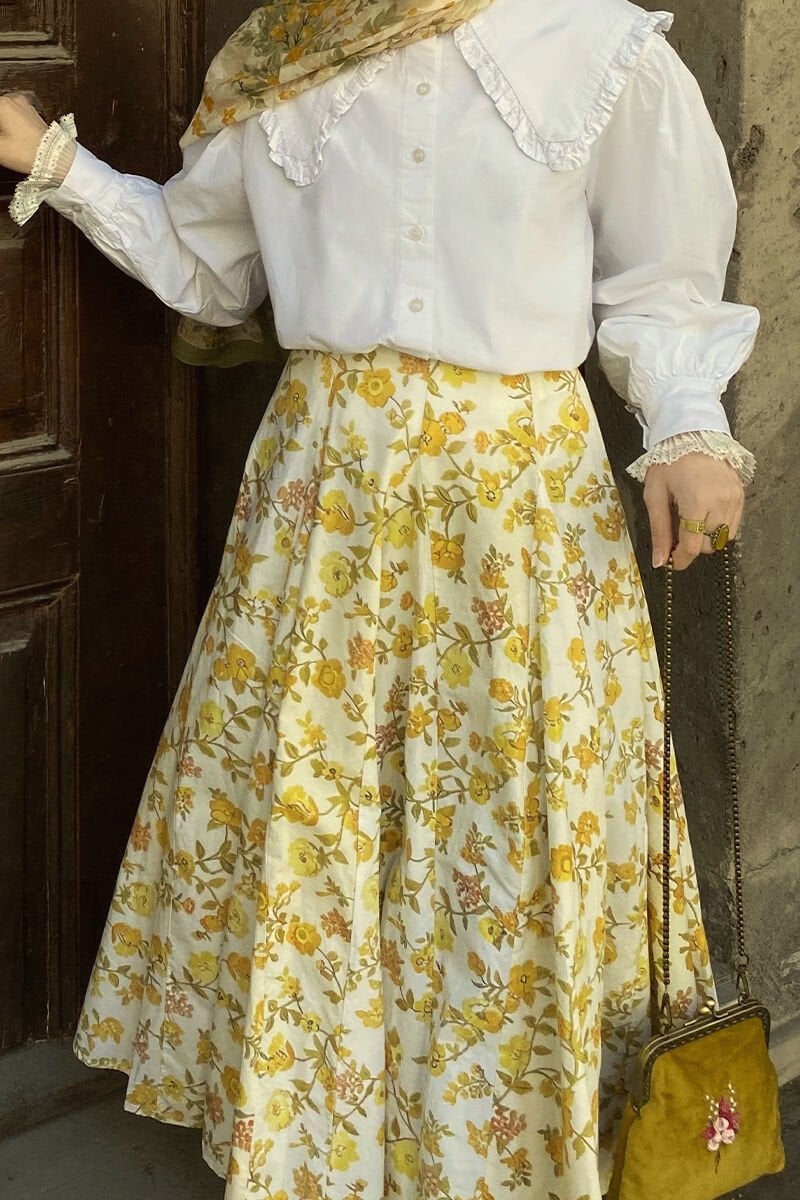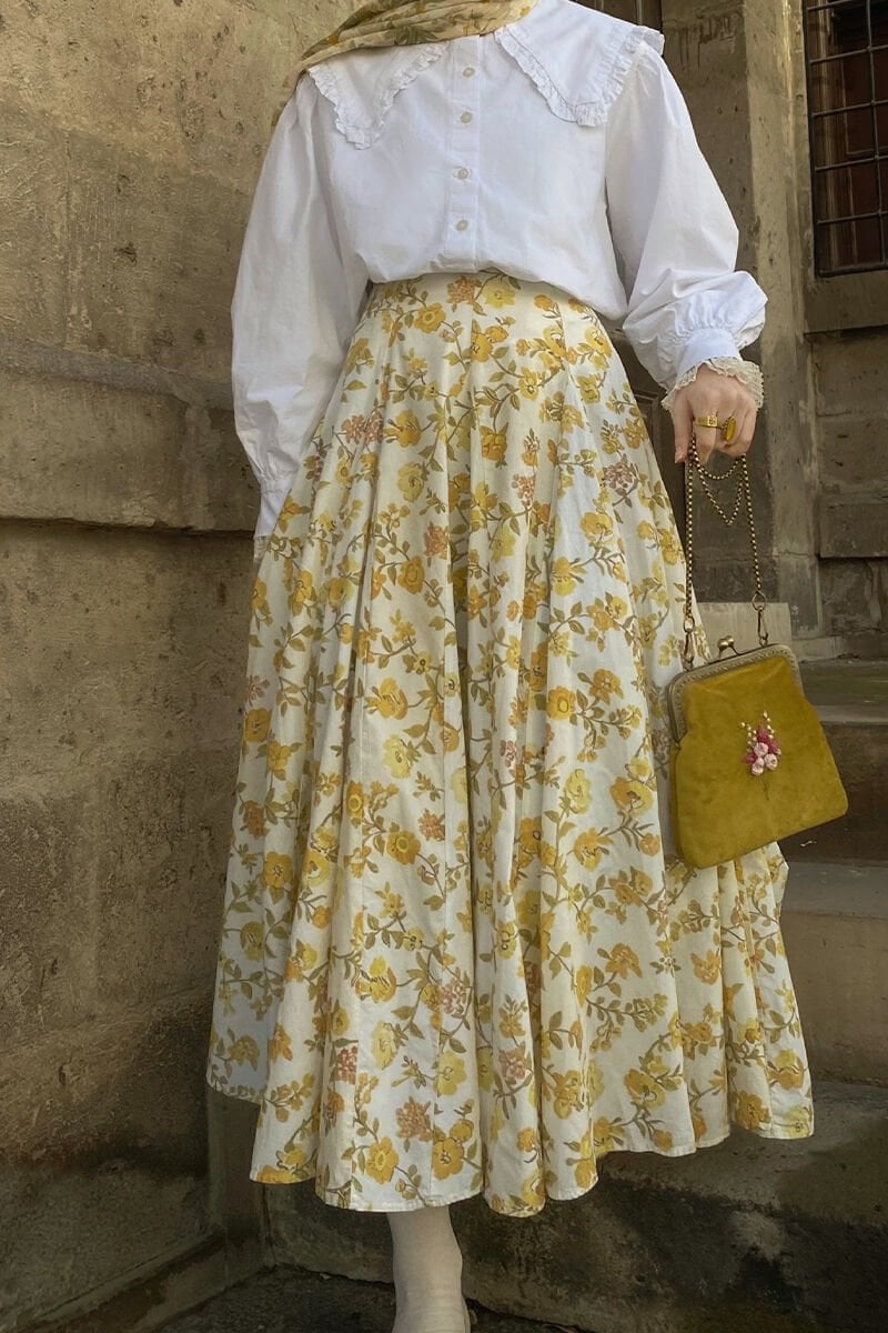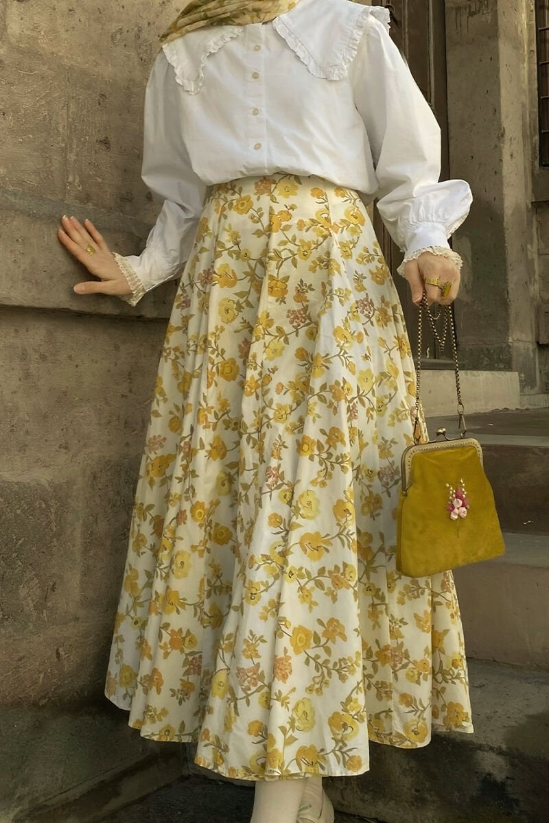 Sarı Çiçek Desenli Parçalı Etek
