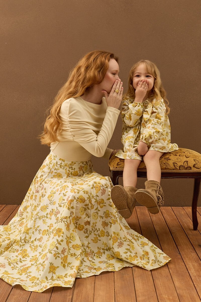 Sarı Çiçek Detaylı Çocuk Elbise