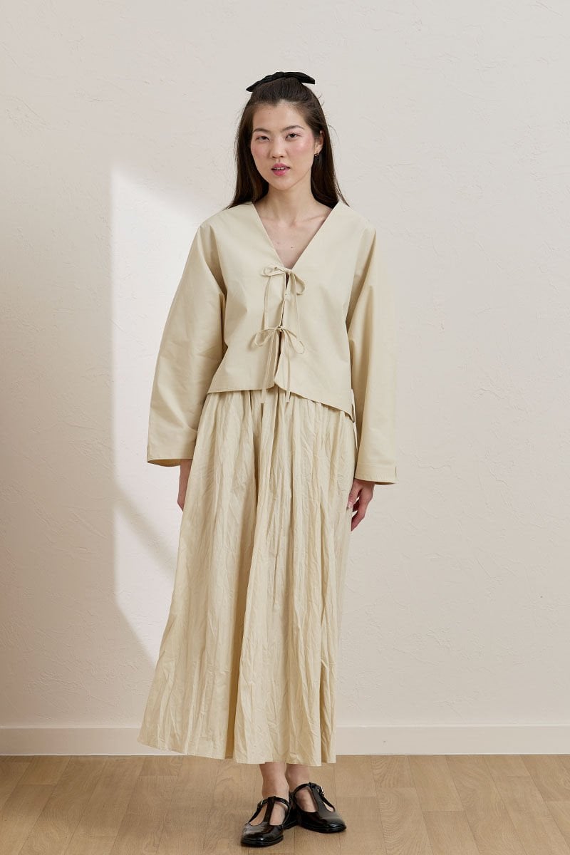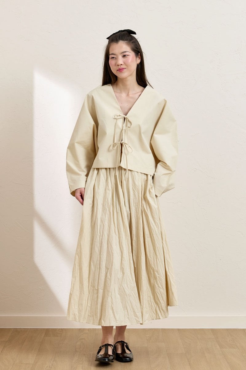 Krem 2 Fiyonklu Ceket & Kraşlı Balon Etek Takım