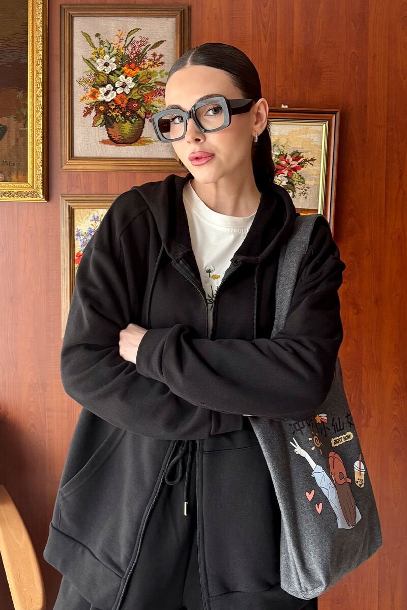 Siyah 3 İplik Basic Hırka