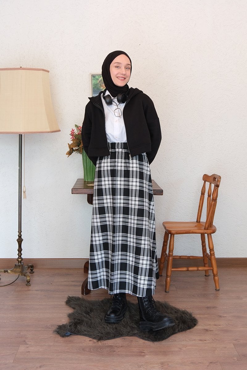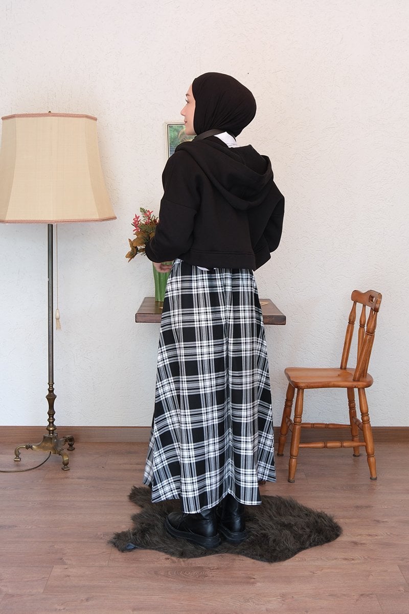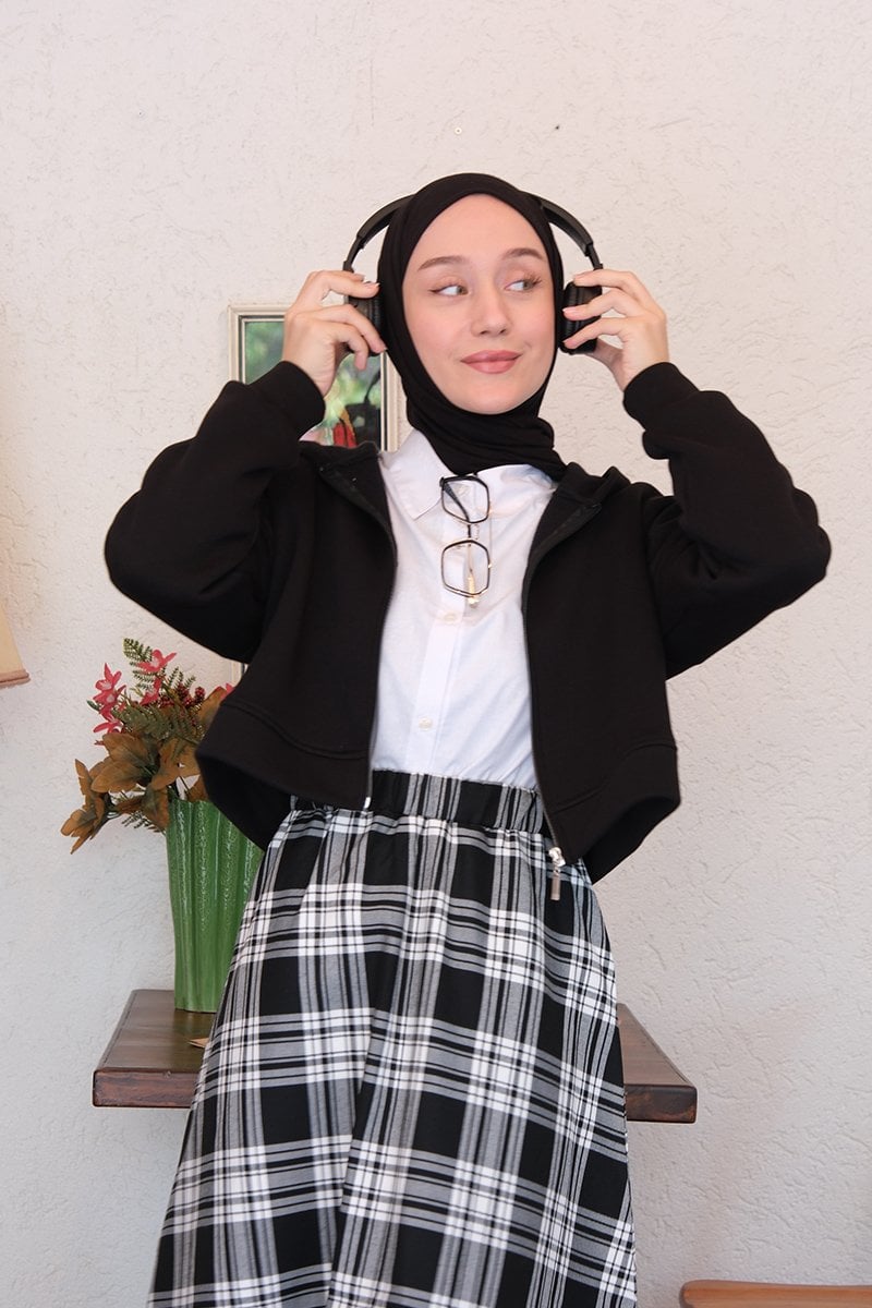 Siyah 3 İplik Kapüşonlu Crop Hırka