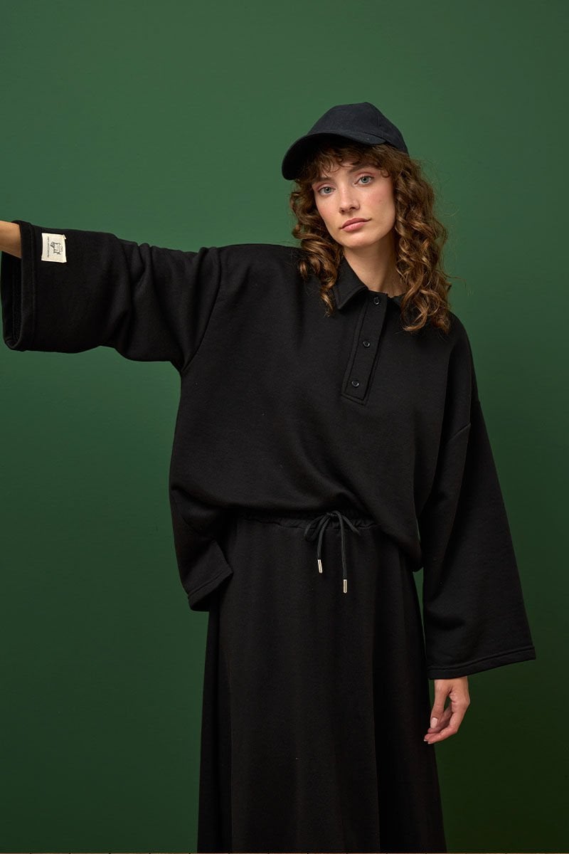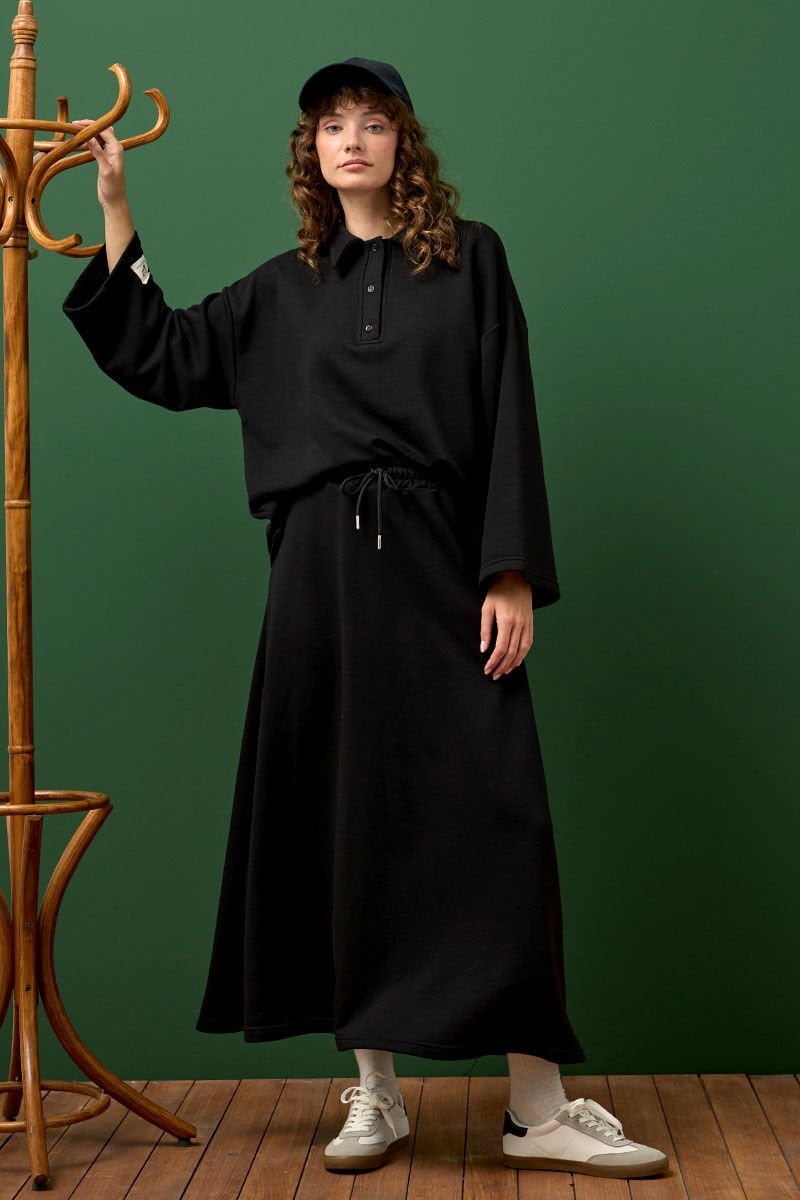 Siyah 3 İplik Polo Yaka Body & Etek Takım
