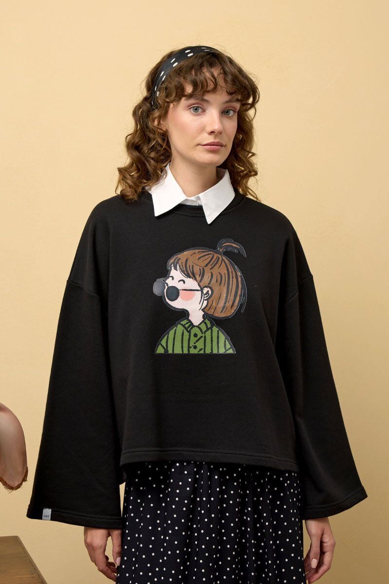 Siyah Baskılı 3 İp Body & Siyah Viskon Puantiye Detaylı Etek Takım