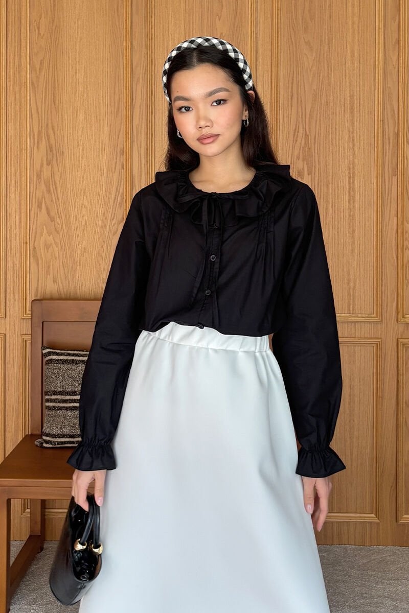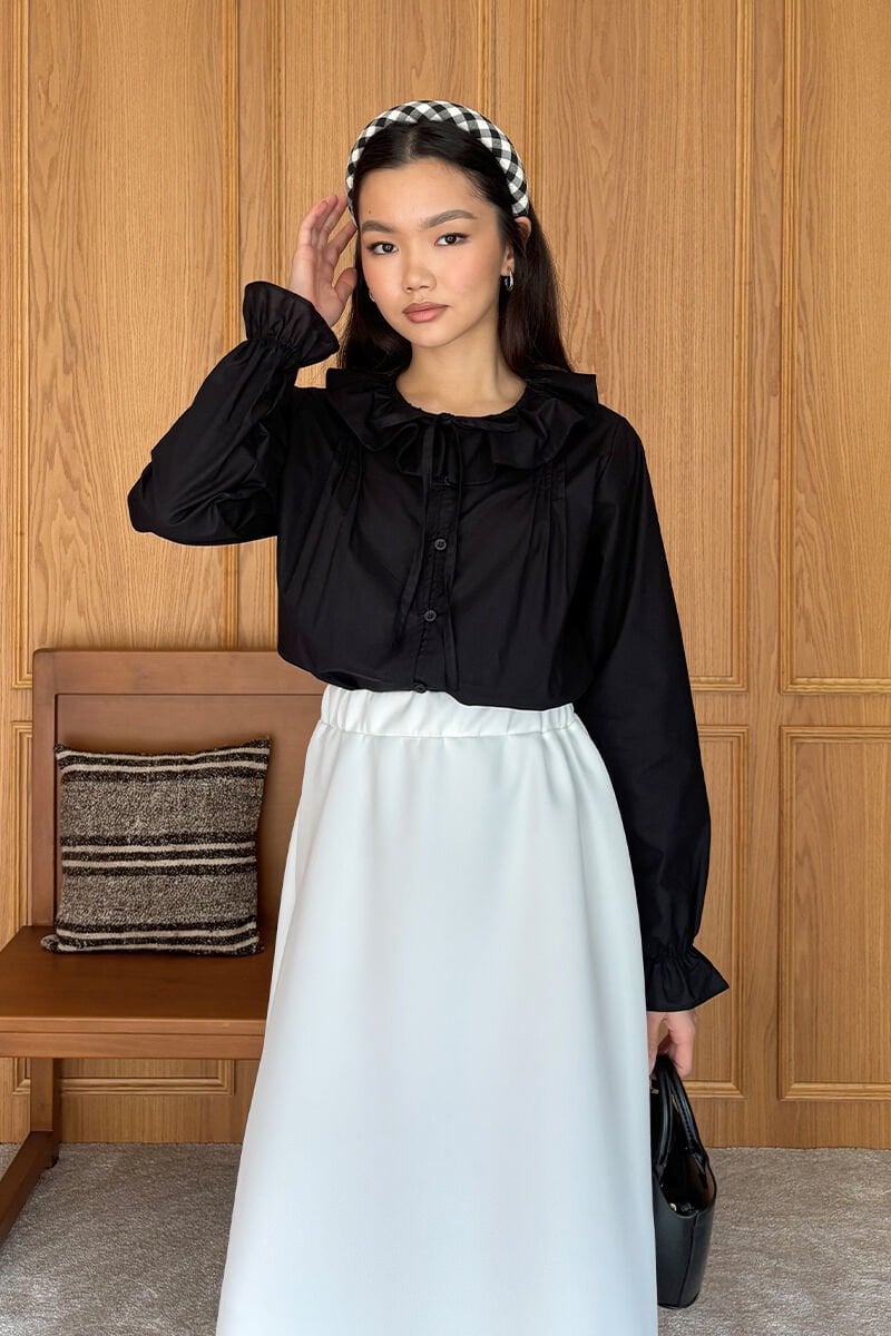 Siyah Bebe Yaka Fiyonklu Gömlek