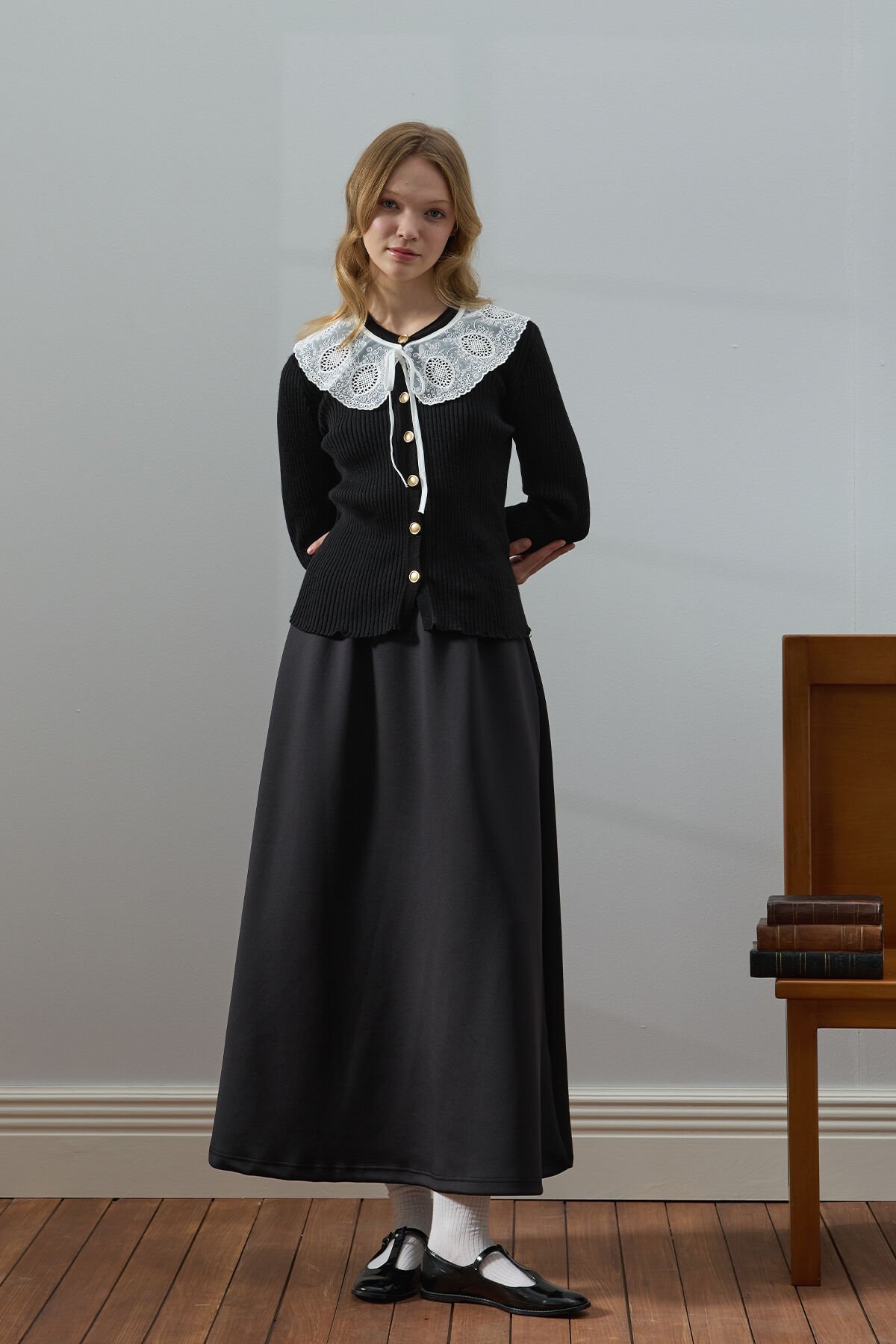 Siyah Beyaz Yakalı Triko Hırka