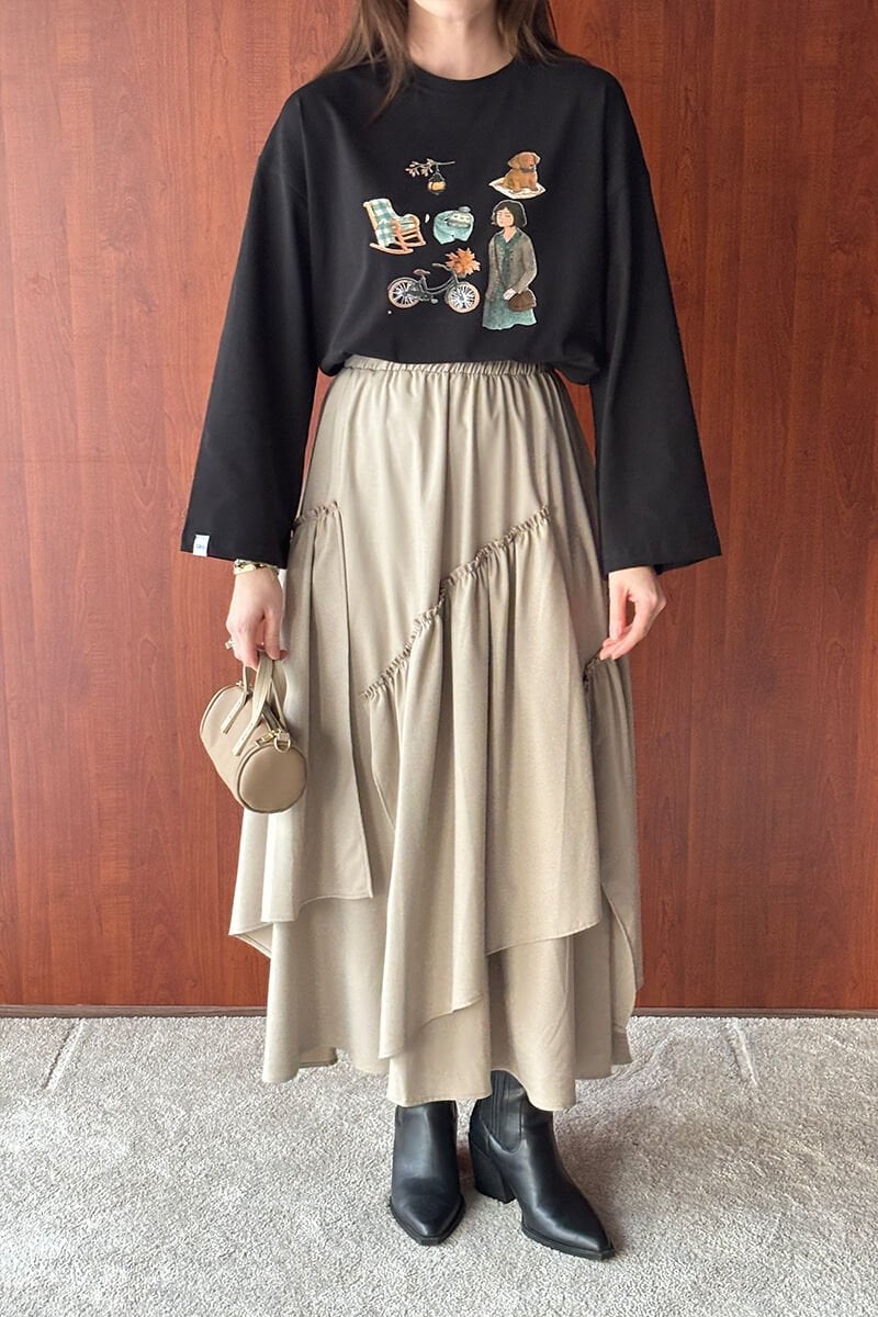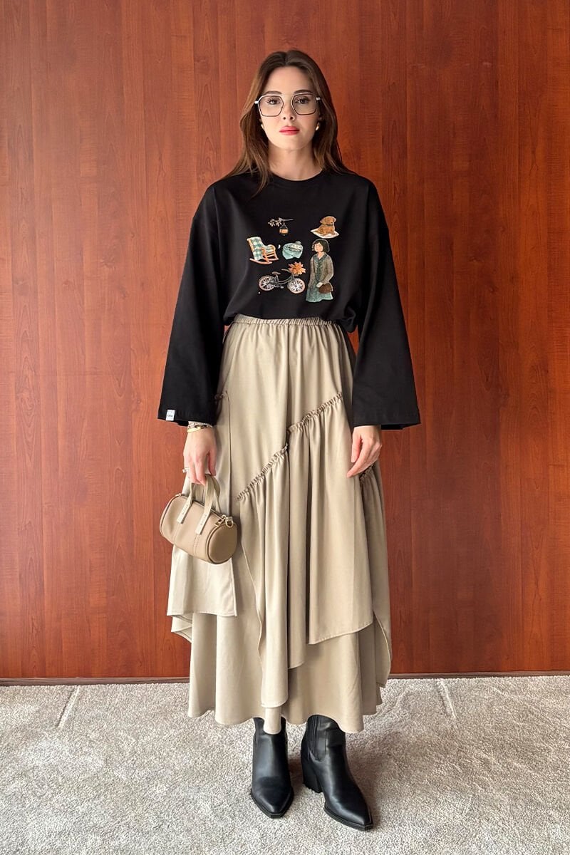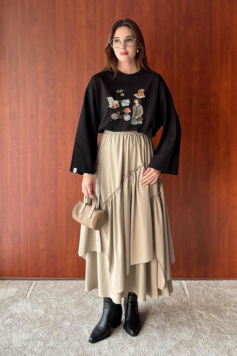 Siyah Bisiklet Baskılı Basic Body & Vizon Koton Bohem Kat Etek Takım