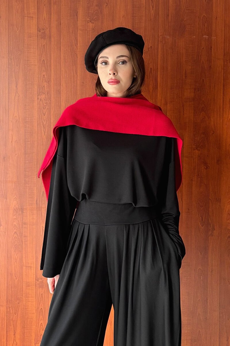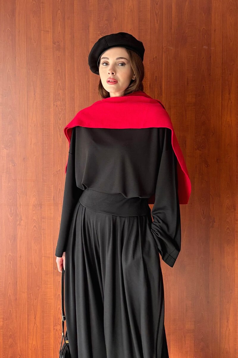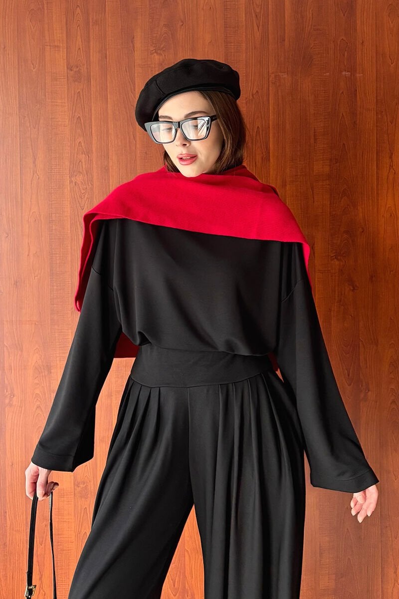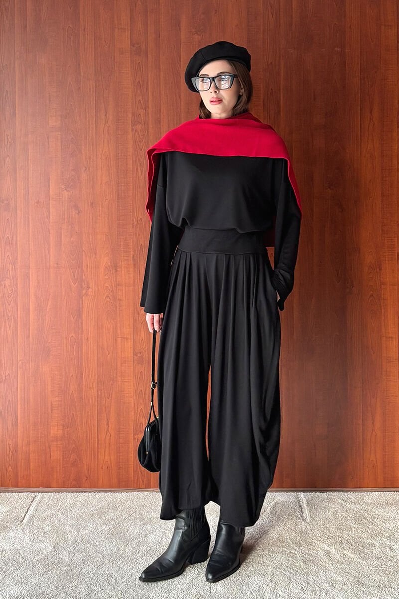Siyah Oysho Kumaş Pileli Şalvar Takım