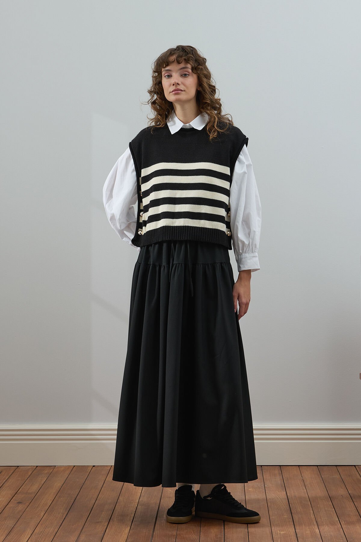 Siyah Çizgi Detaylı Süveter & Siyah Fırfır Detay Poliviskon Etek Takım