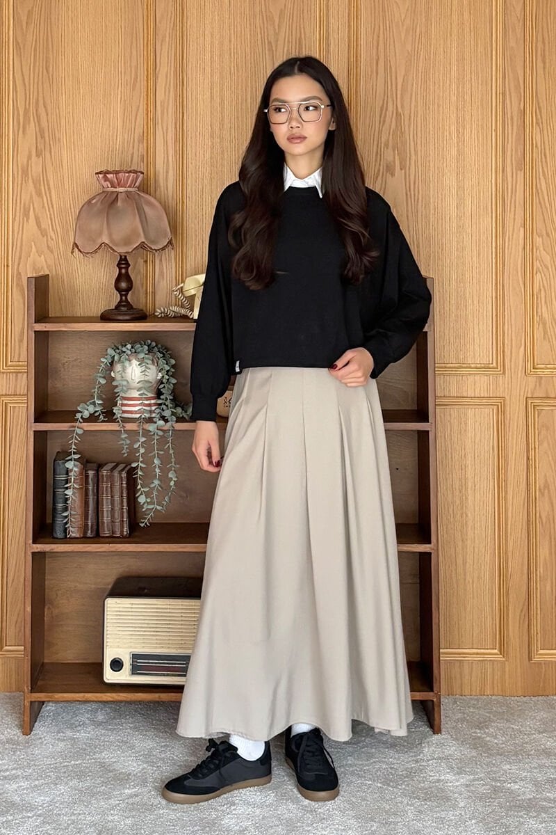 Siyah Crop & Vizon Poliviskon Kolej Etek Takım