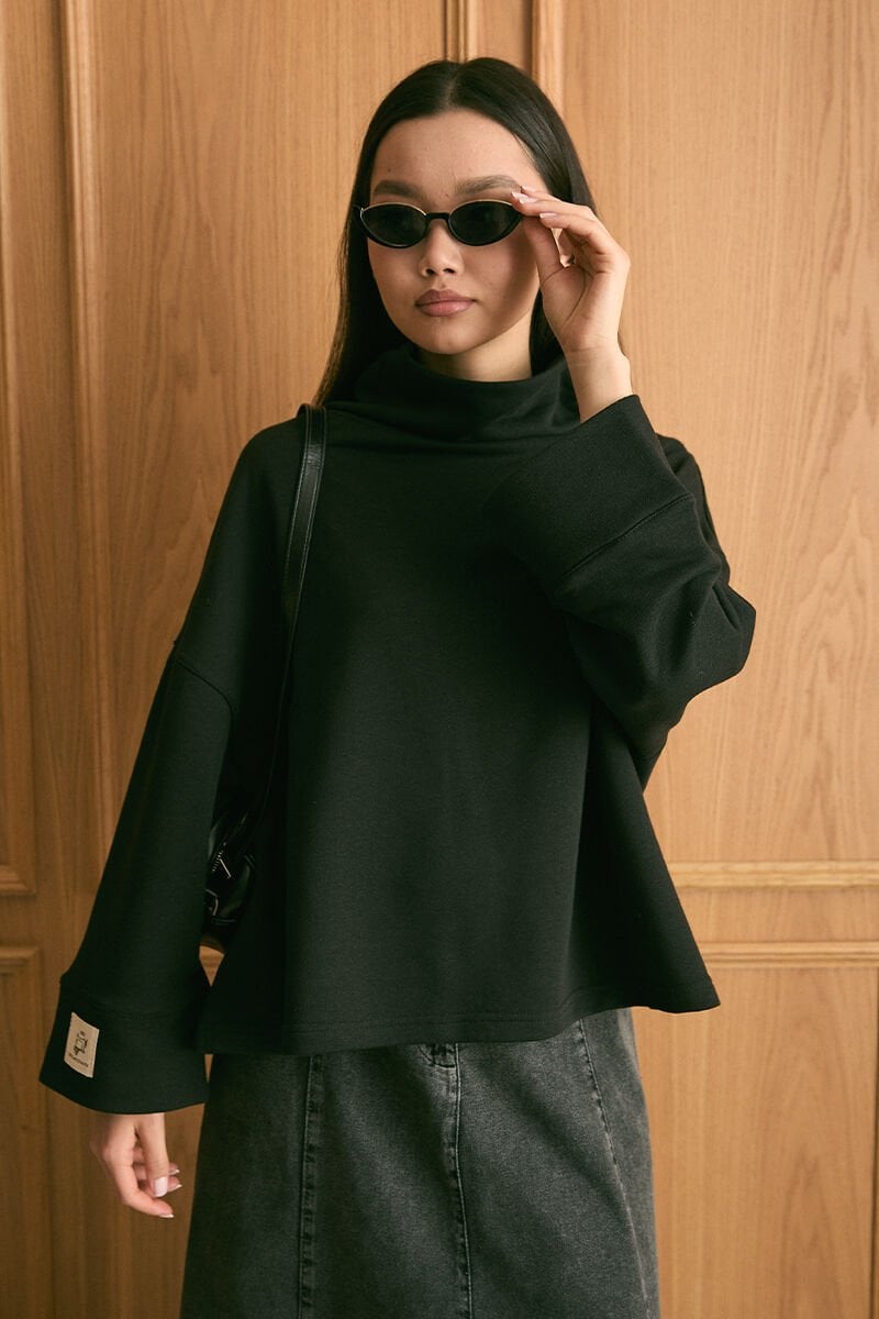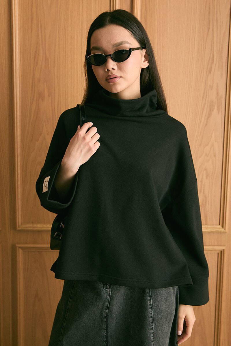 Siyah Dik Yaka Kışlık Bluz