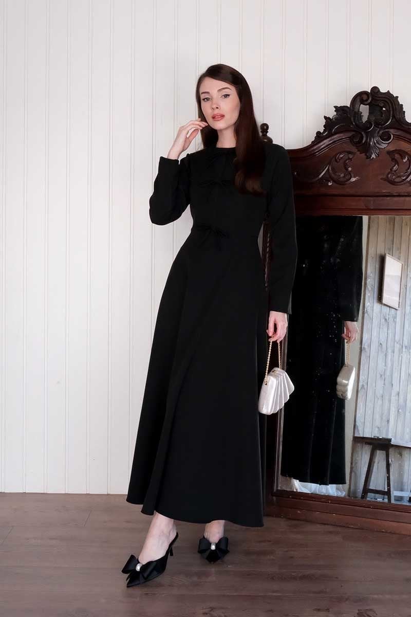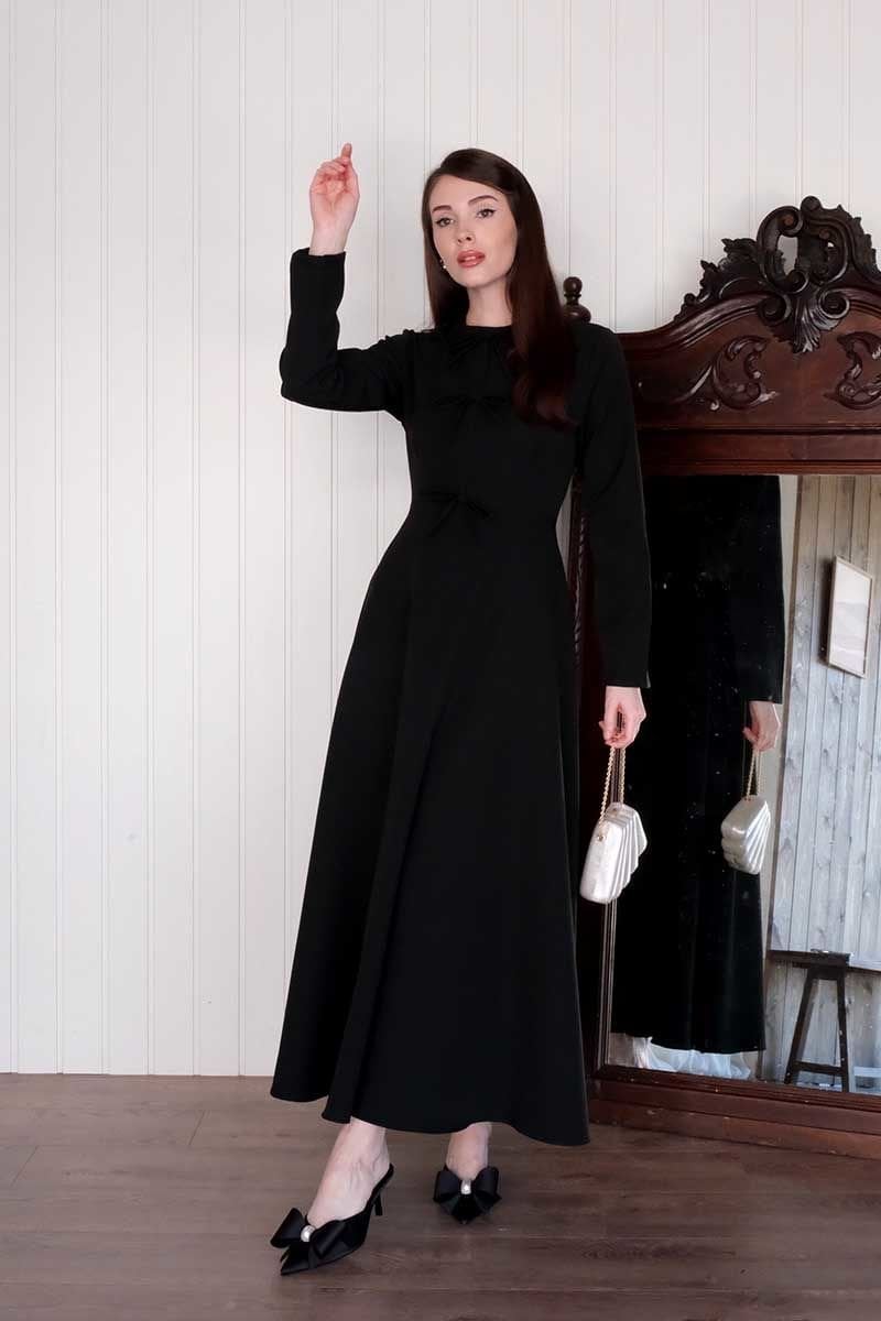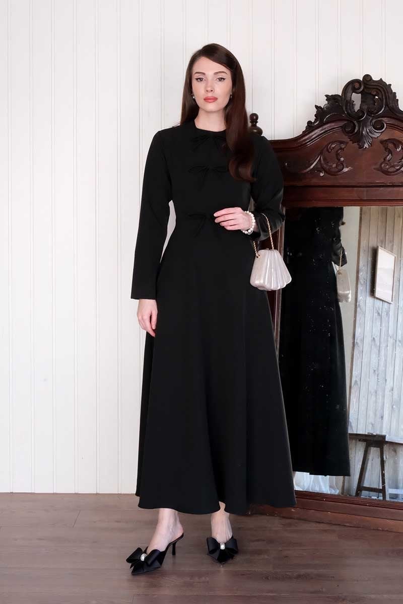 Üst kısmında bulunan fiyonk detayı, elbiseye ayrı bir şıklık katar.