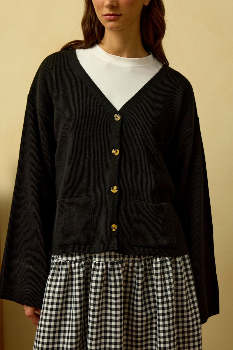 Şıklığı ve rahatlığı bir arada sunan İspanyol Kol Triko Hırka, günlük kombininizi tamamlar.