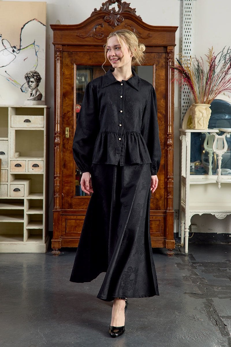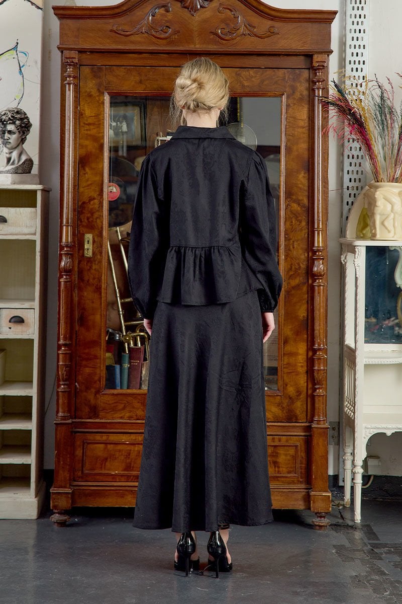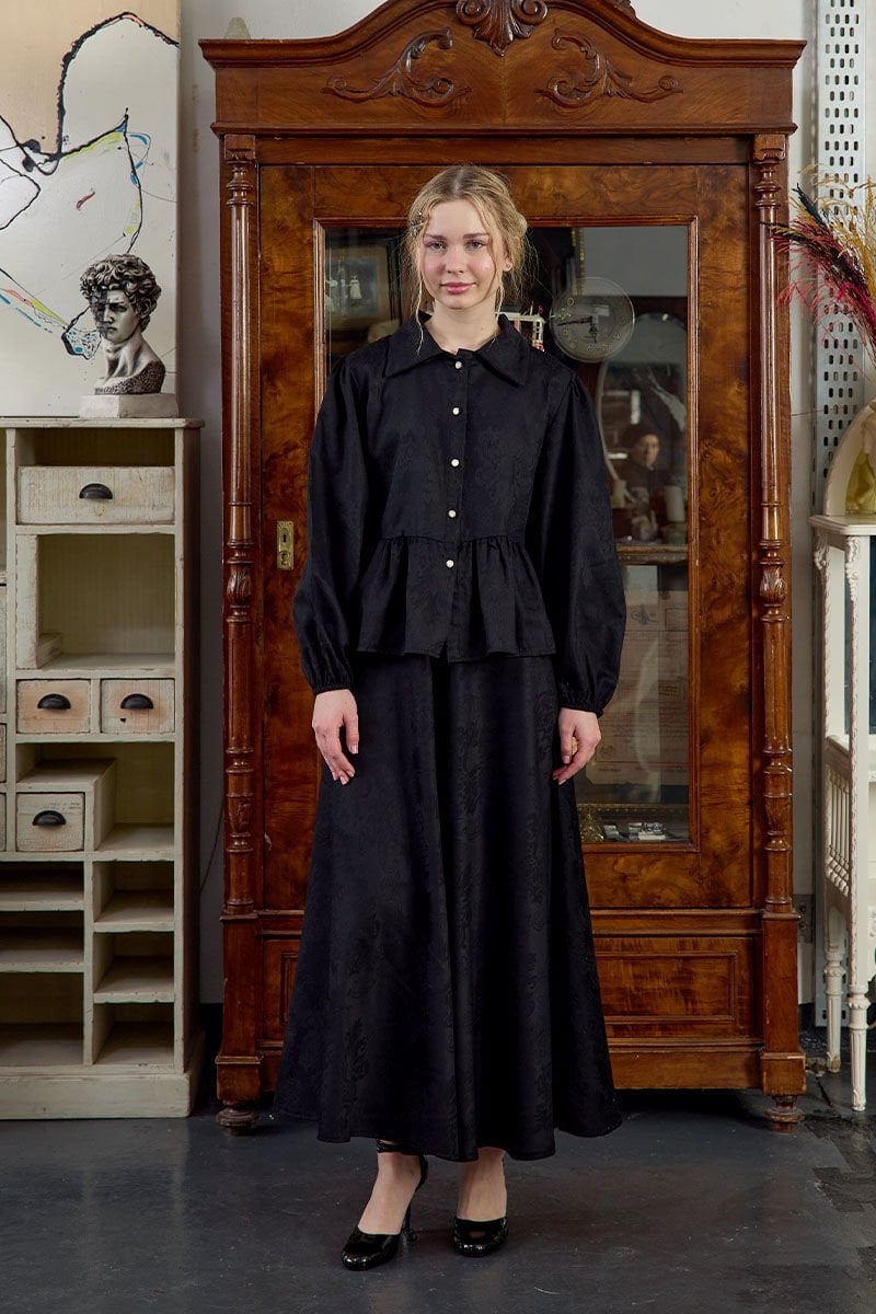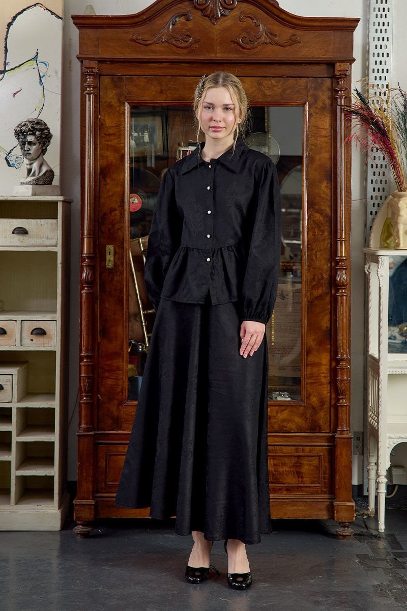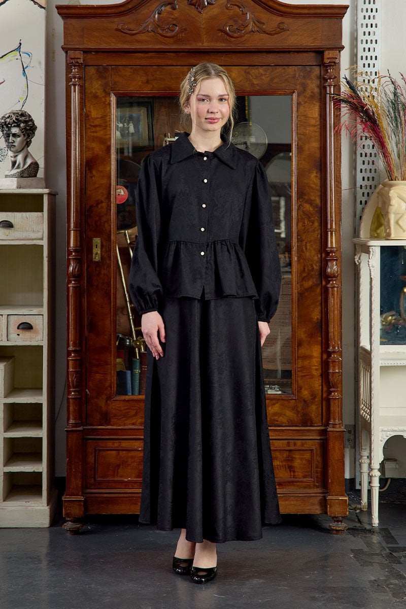 Siyah Jakarlı Gömlek Etek Takım