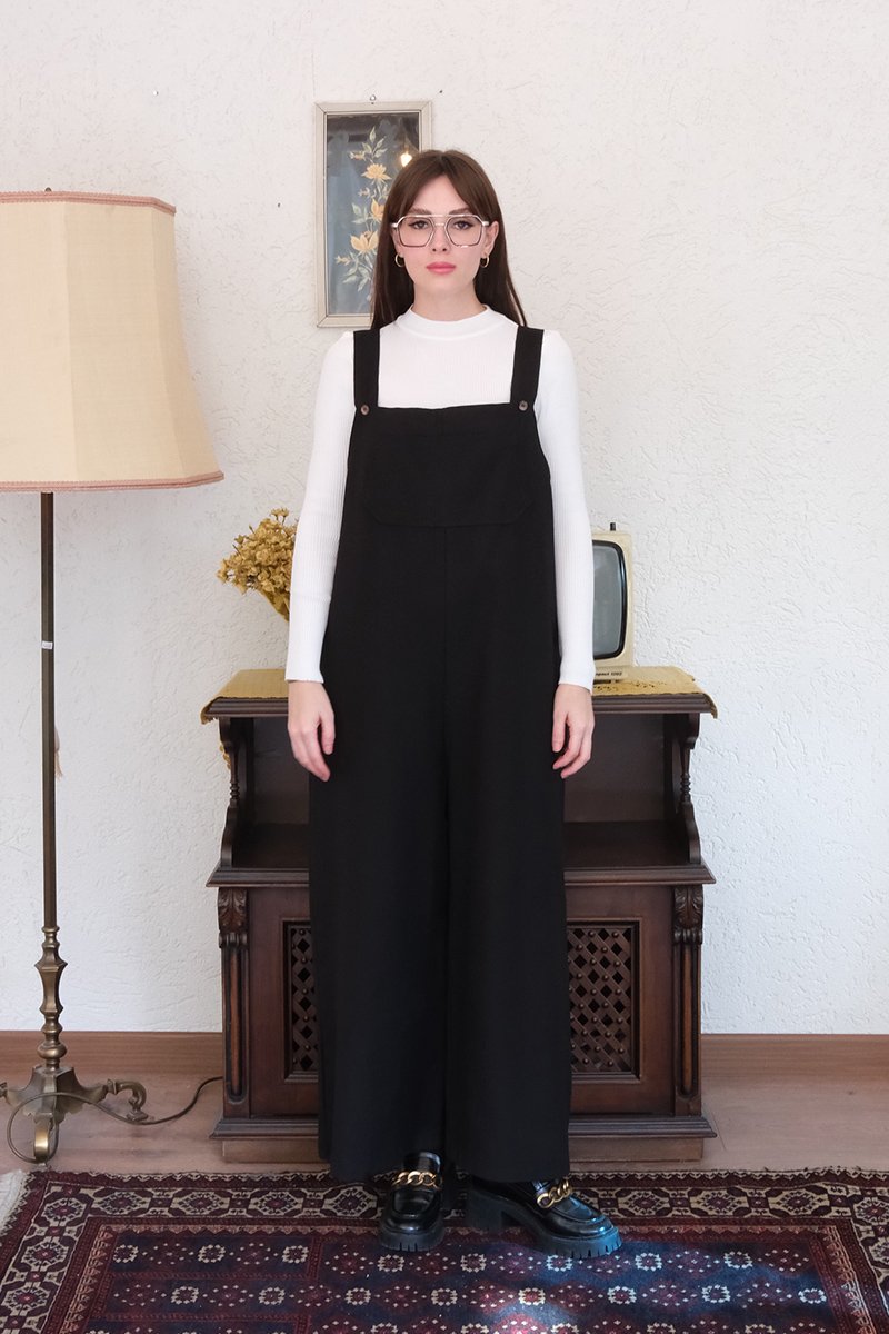 Siyah Keten Salopet Tulum
