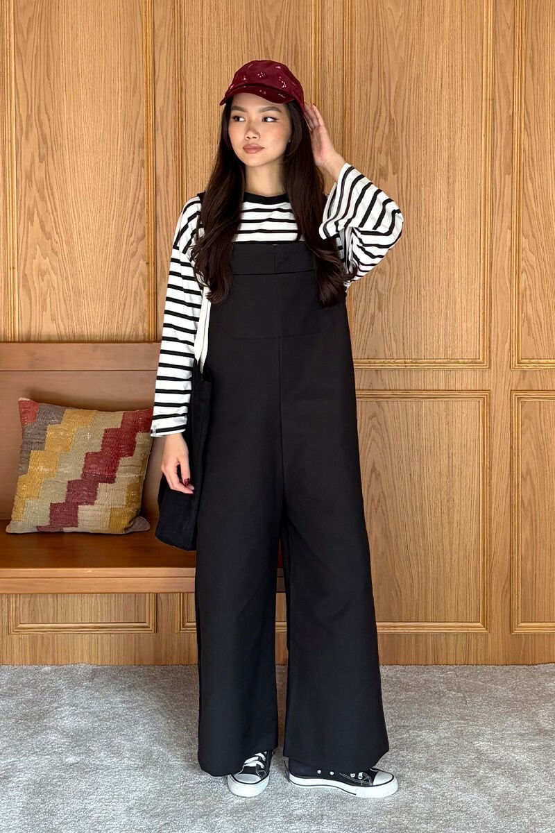 Siyah Keten Salopet Tulum