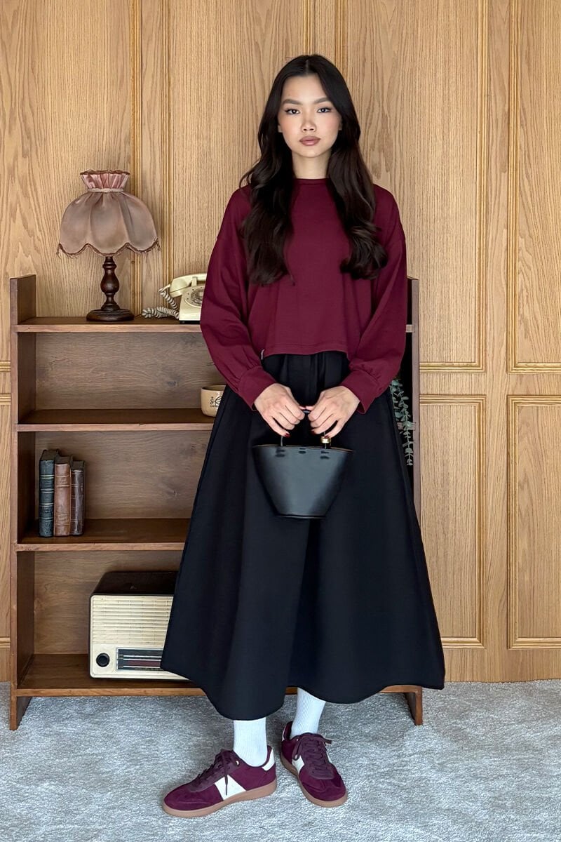 Siyah Keten Tek Düğmeli Etek