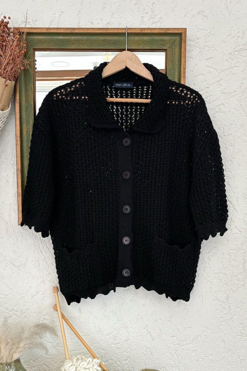 Siyah Kısa Kollu Triko Hırka