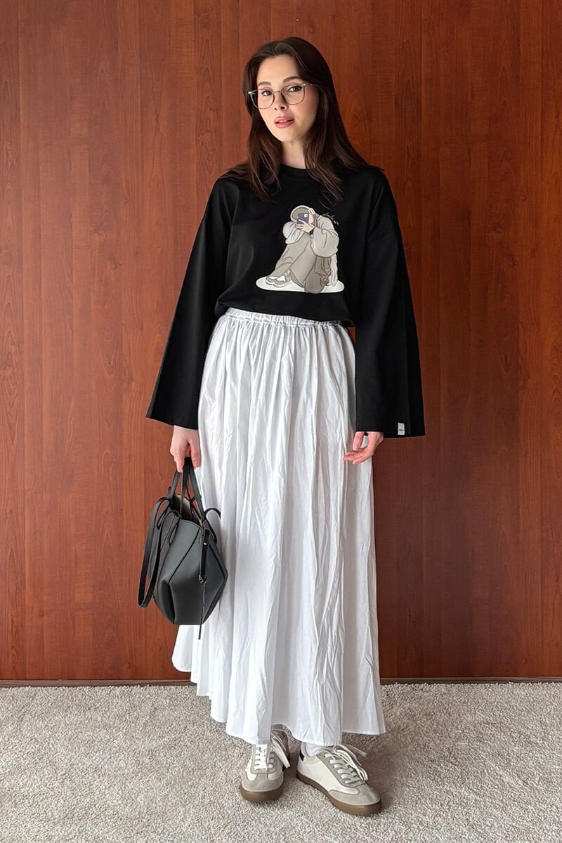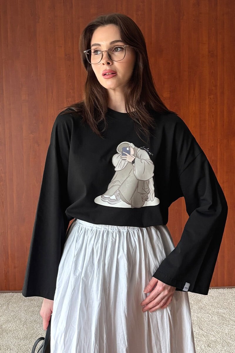Siyah Kız Baskılı Basic Body