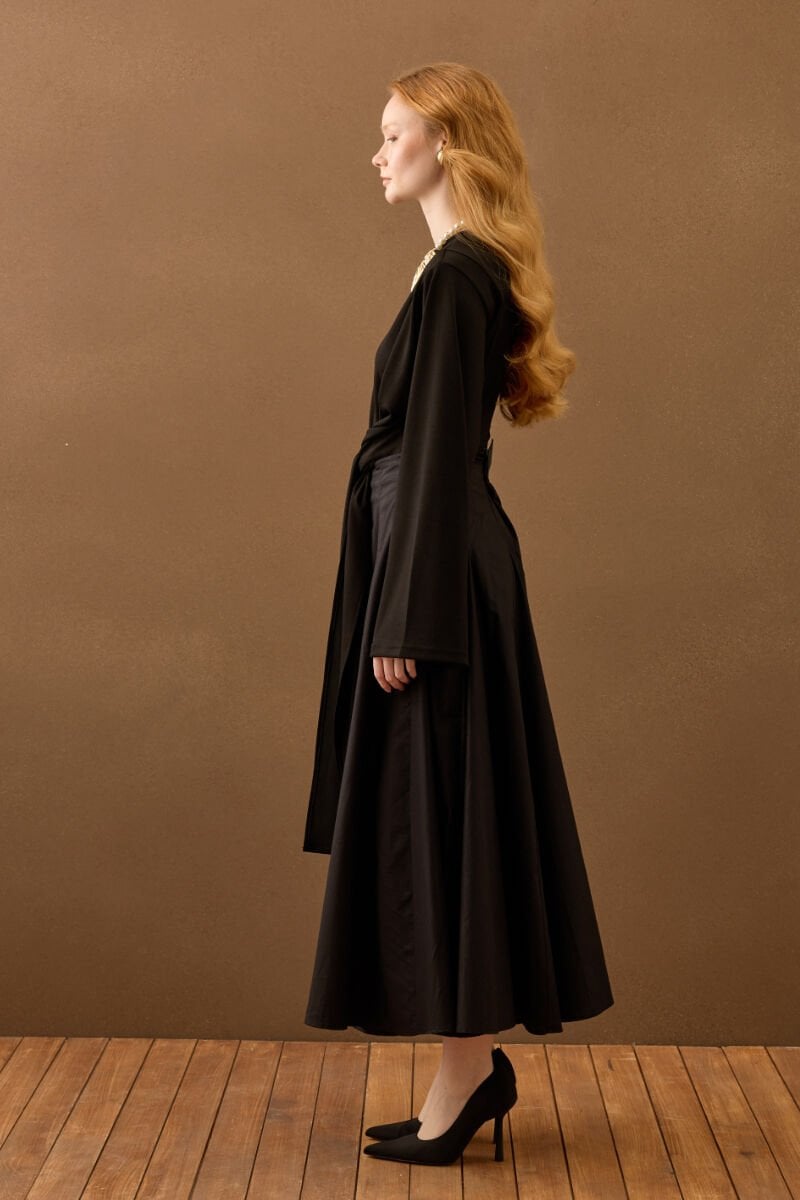 Siyah Koton Parçalı Etek