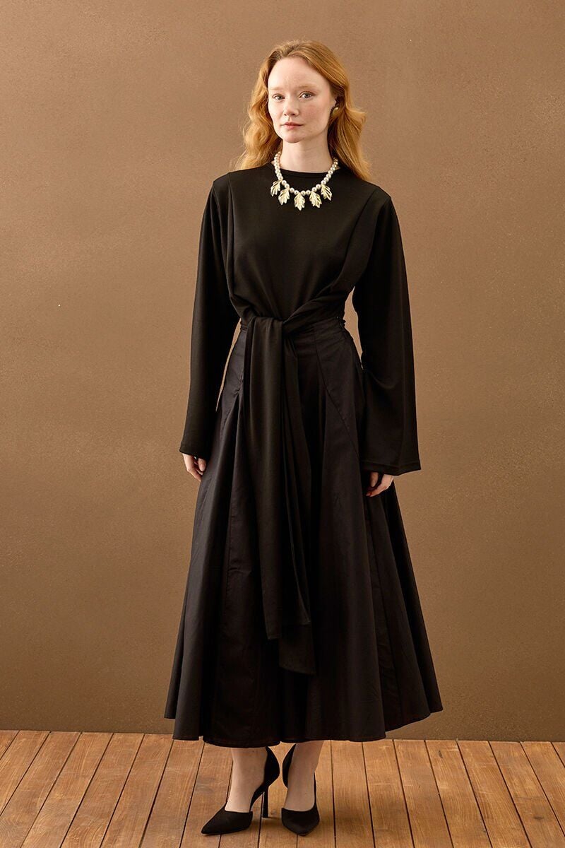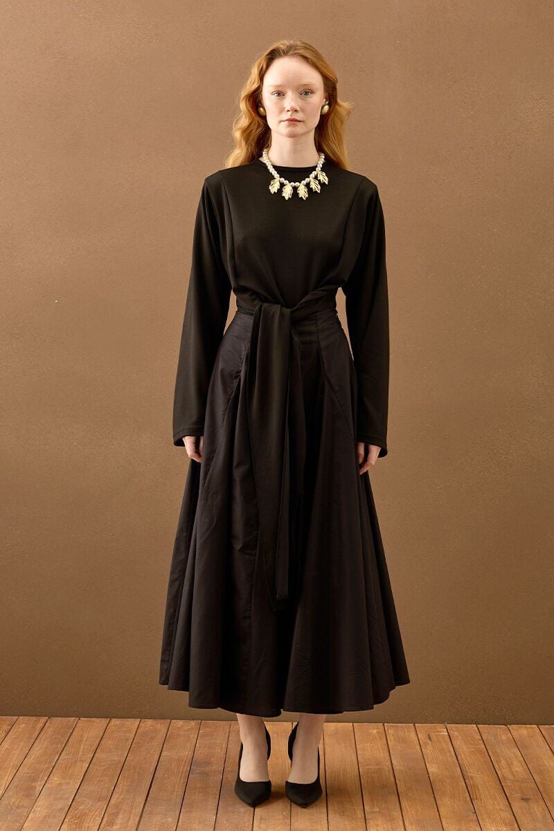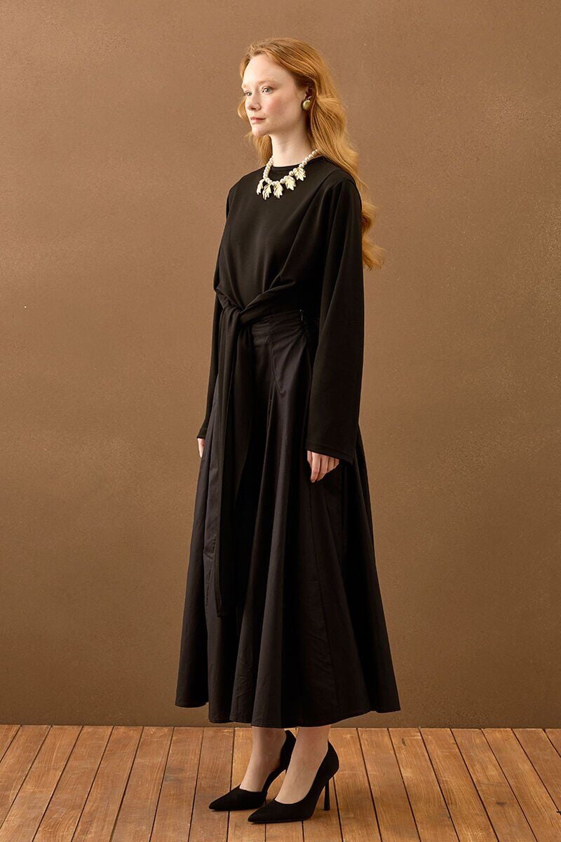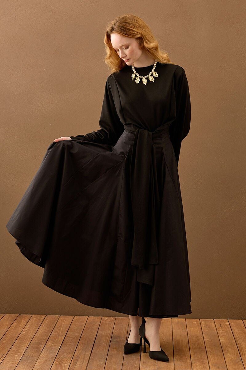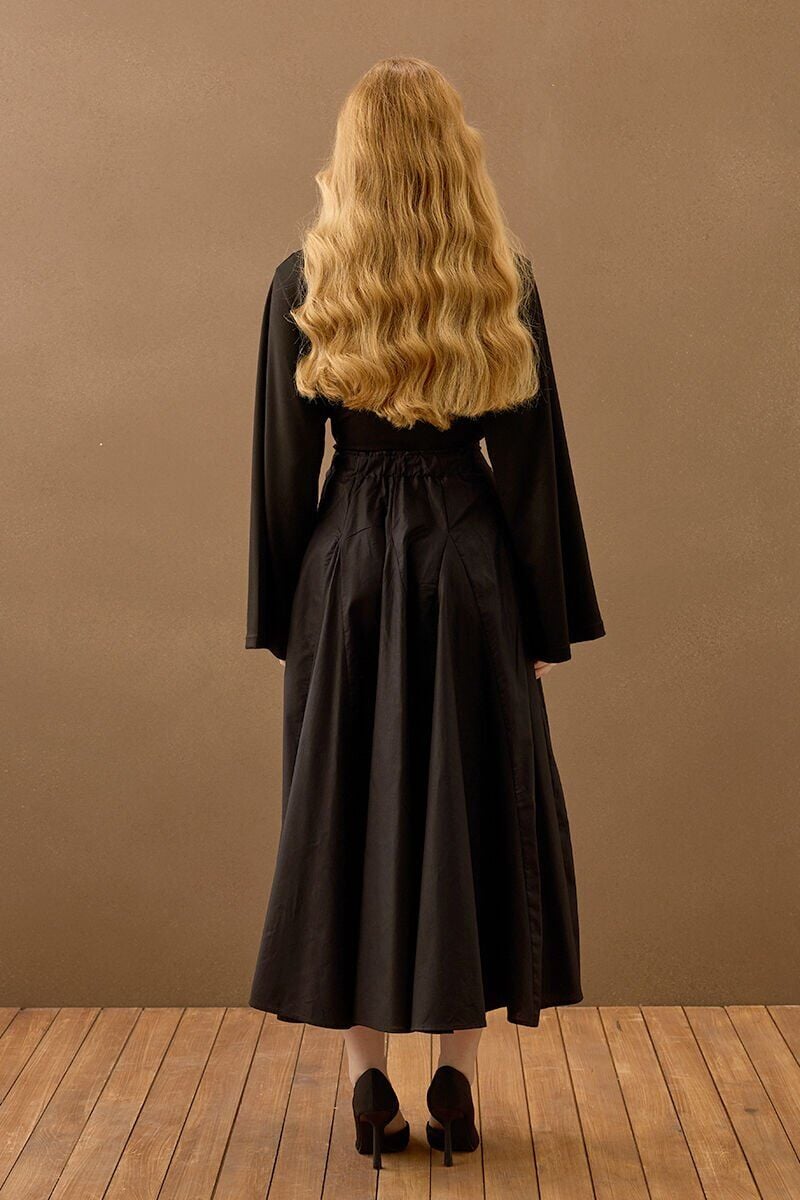 Siyah Koton Parçalı Etek