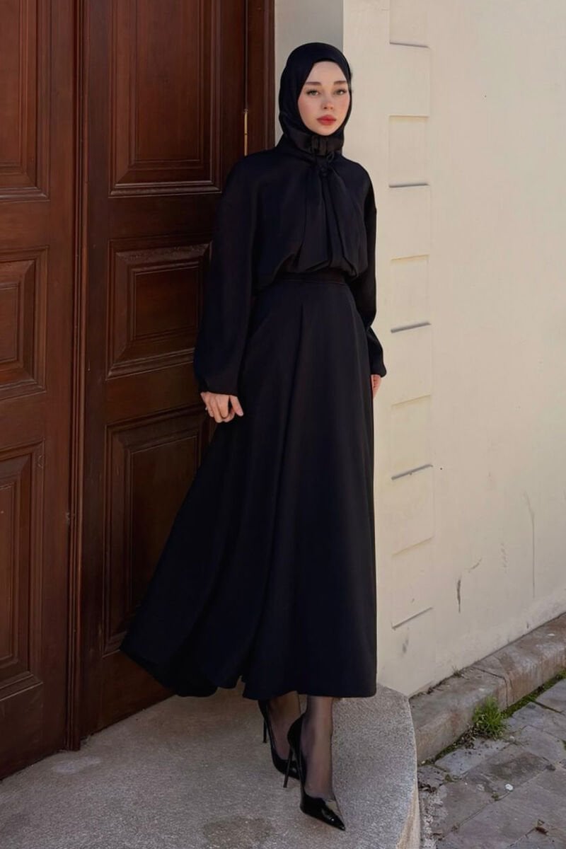 Siyah Krep İki Pileli Etek