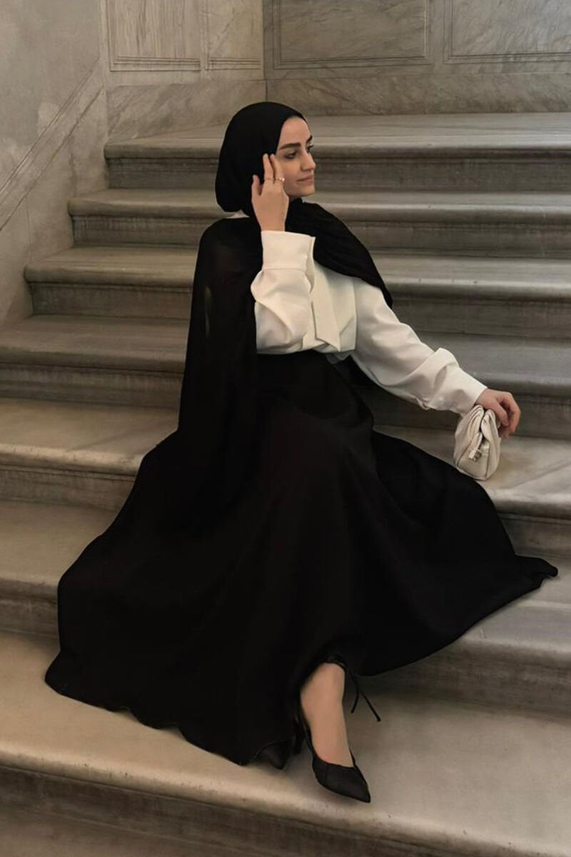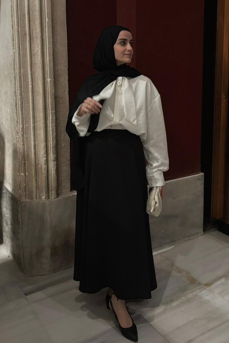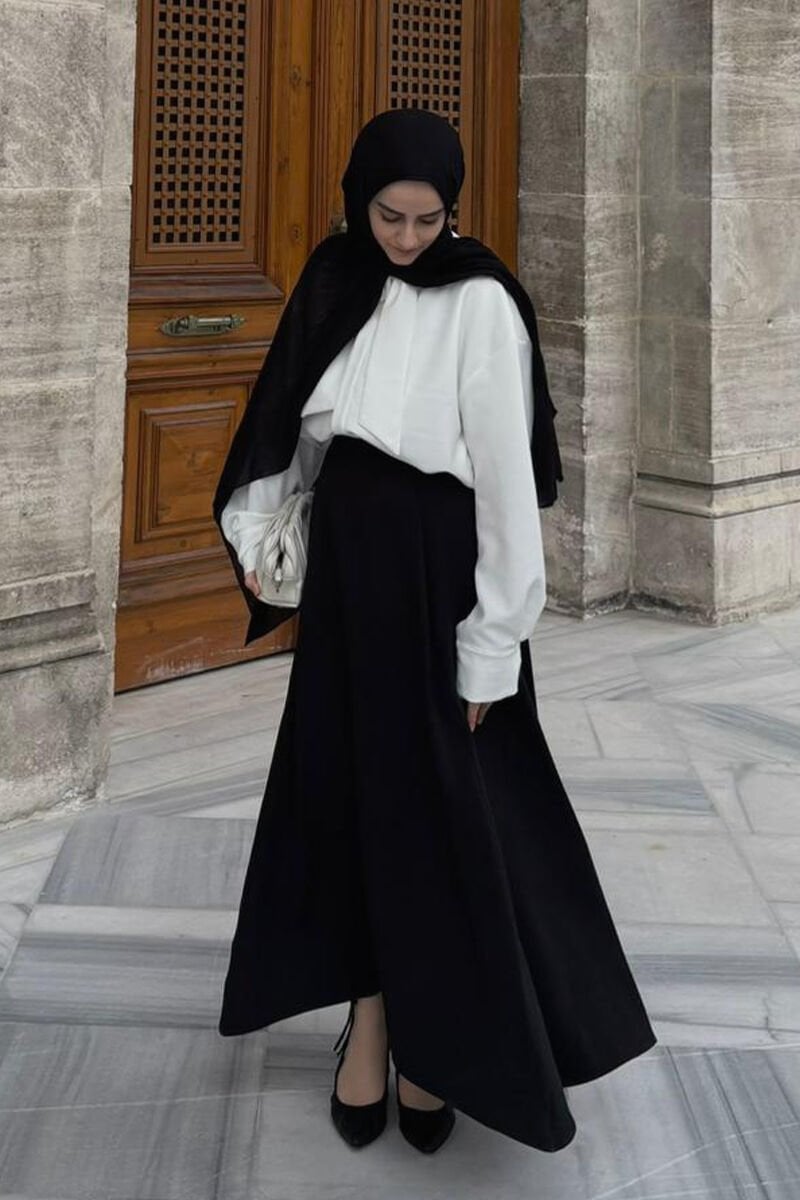 Siyah Krep İki Pileli Etek