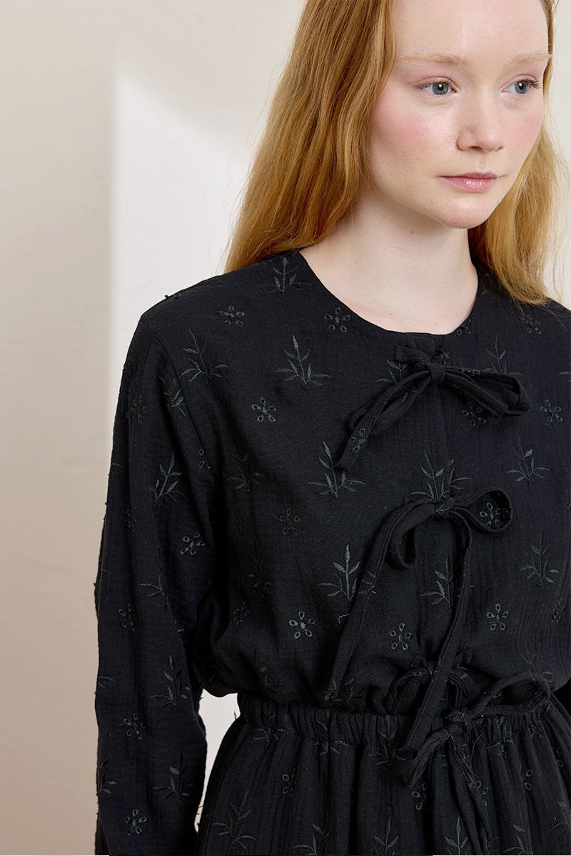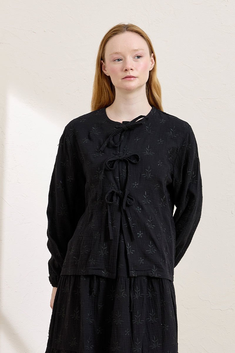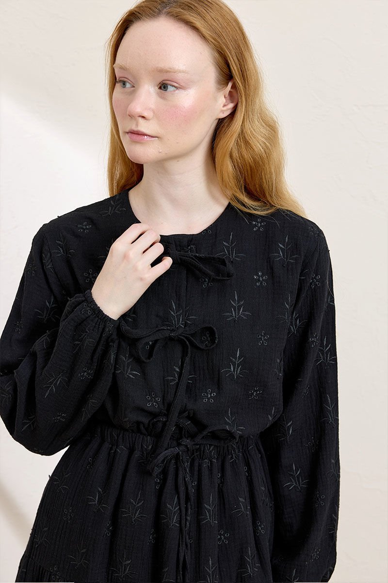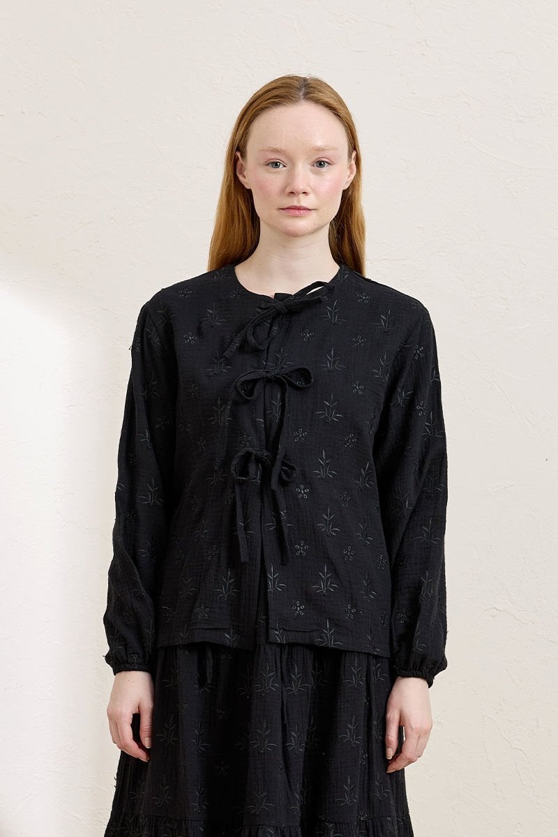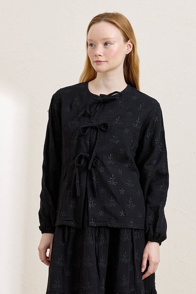 Siyah Fistolu Müslin 3 Fiyonklu Bluz