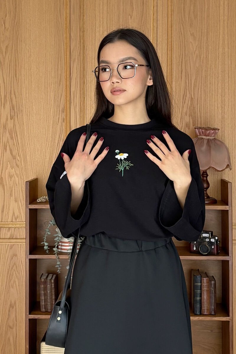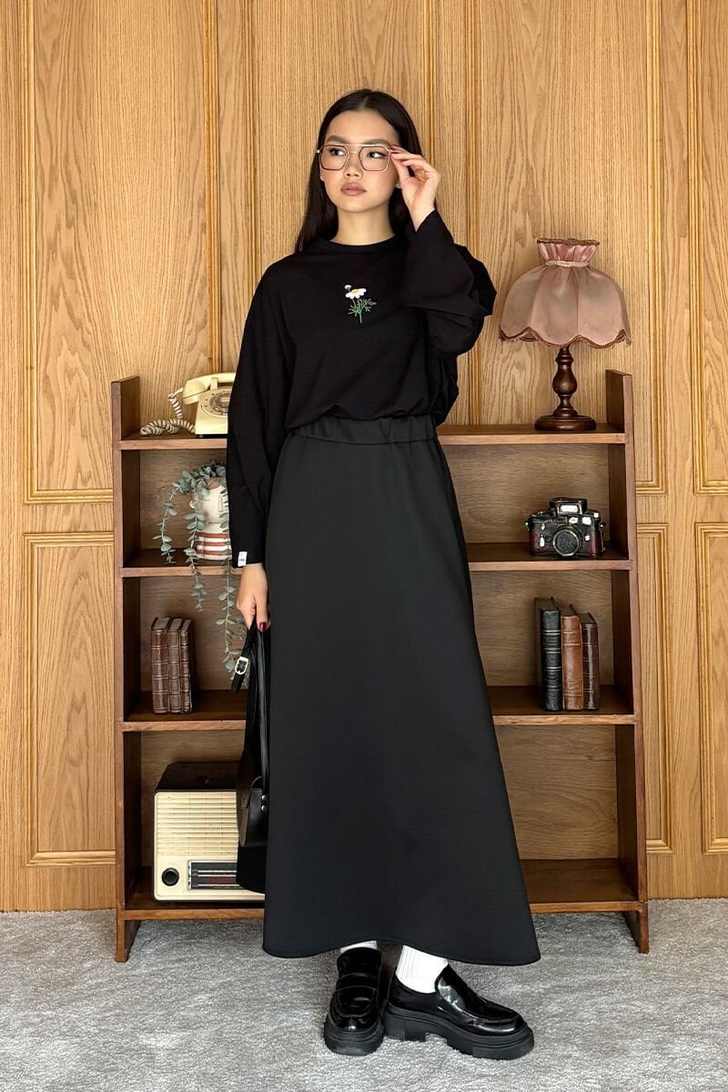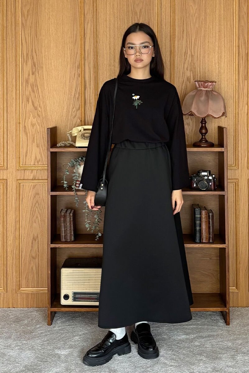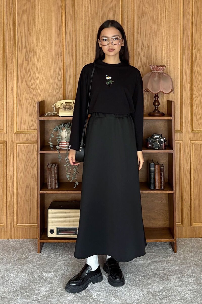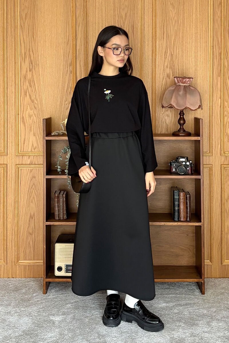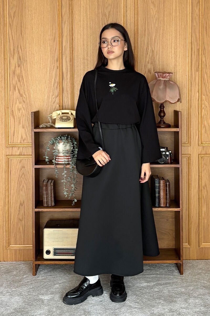 Siyah Nakışlı Body & Siyah Scuba Etek Takım