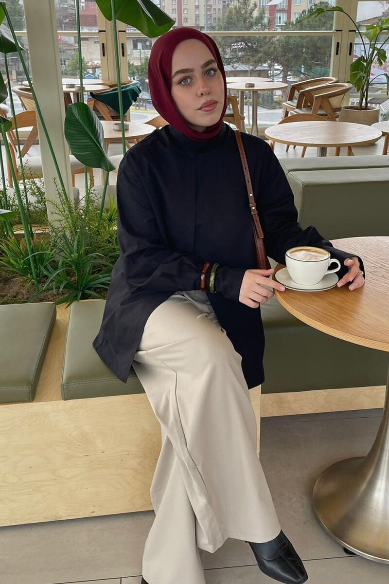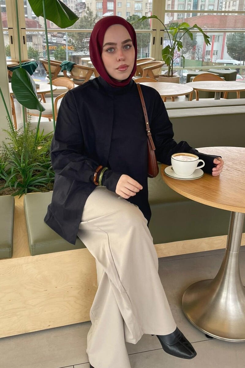 Siyah Ön Yırtmaçlı Gömle