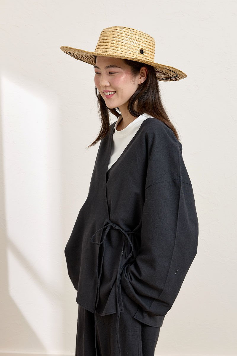 Doğal keten kumaşıyla hafif ve nefes alabilen bir yapıya sahiptir.