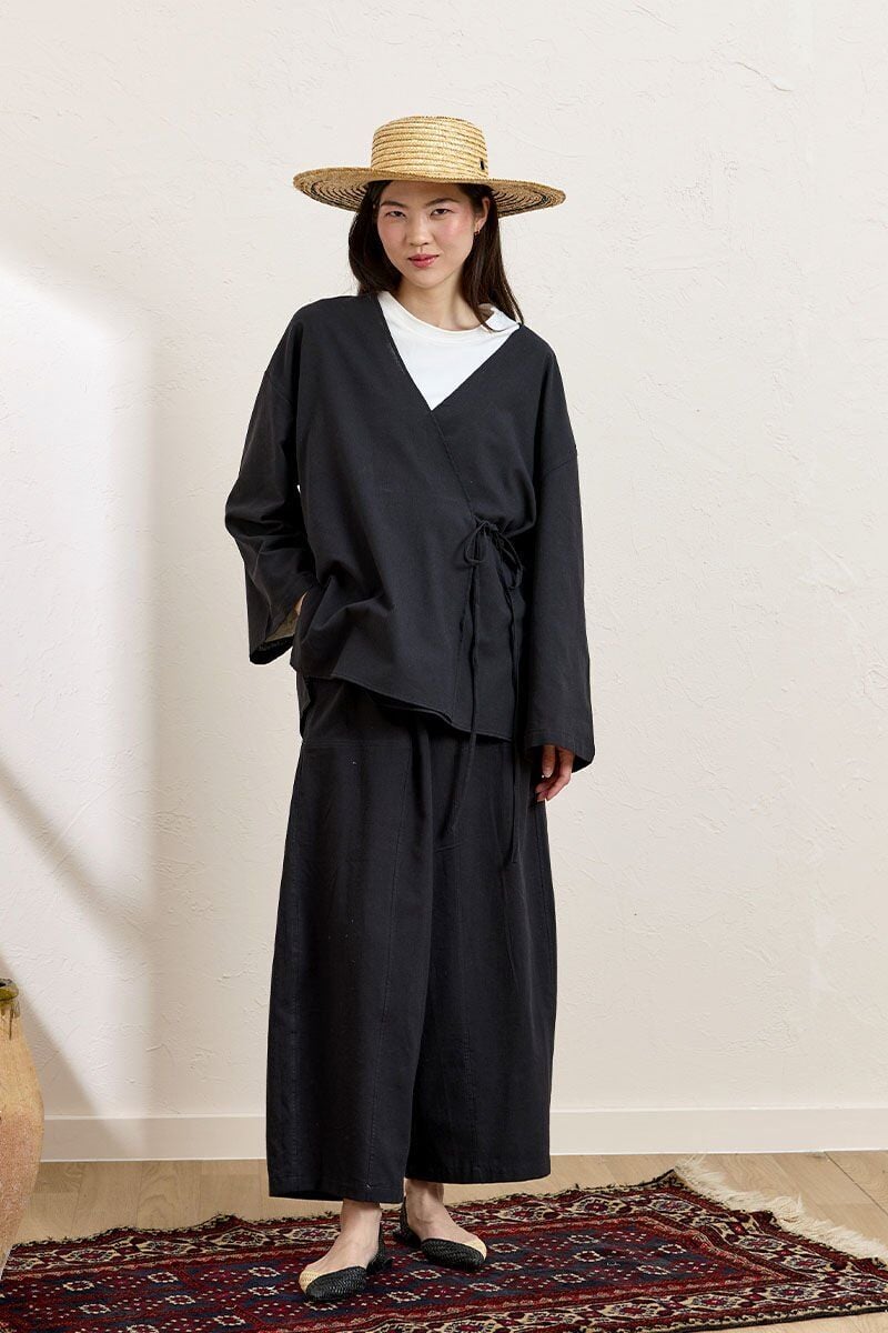 Bu organik keten şalvar pantolon, günün her anında rahatlığı ve şıklığı bir arada sunuyor.