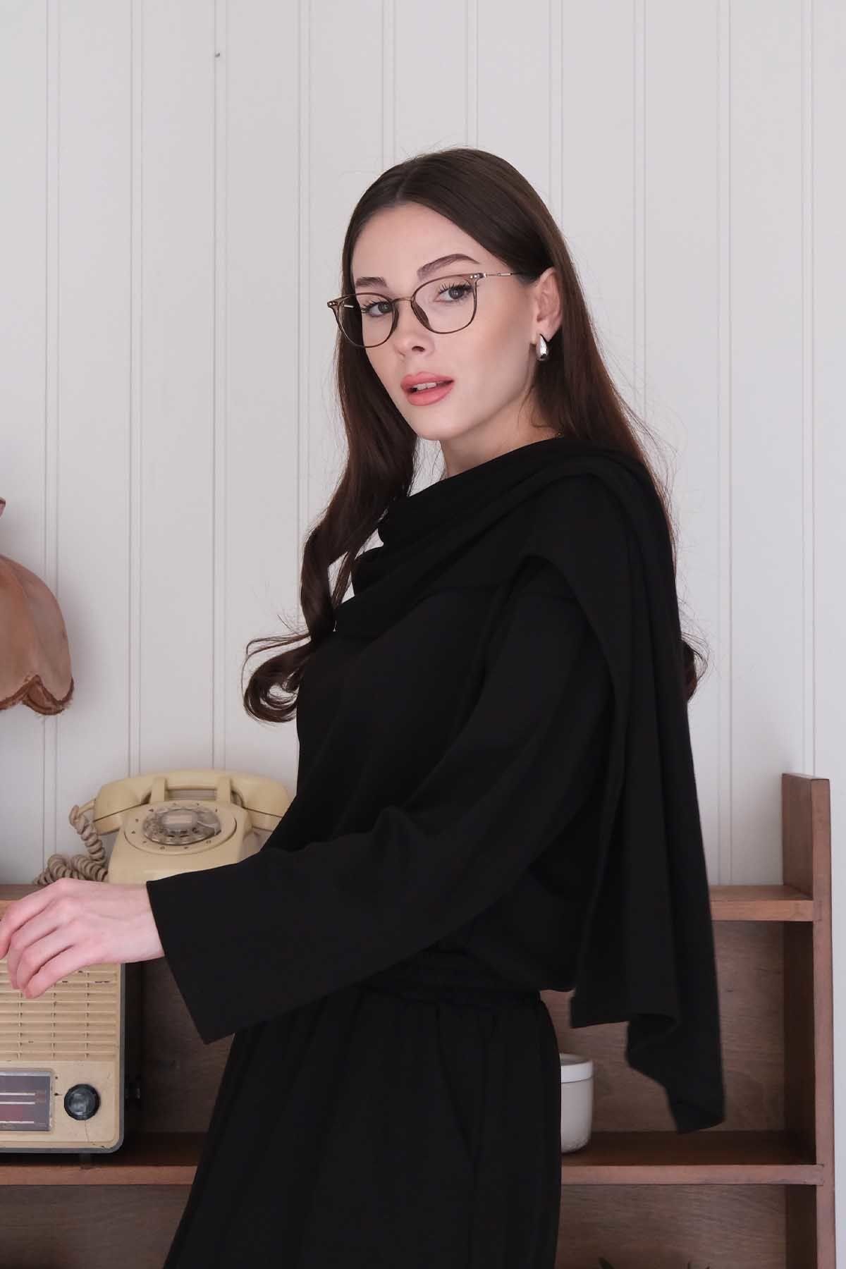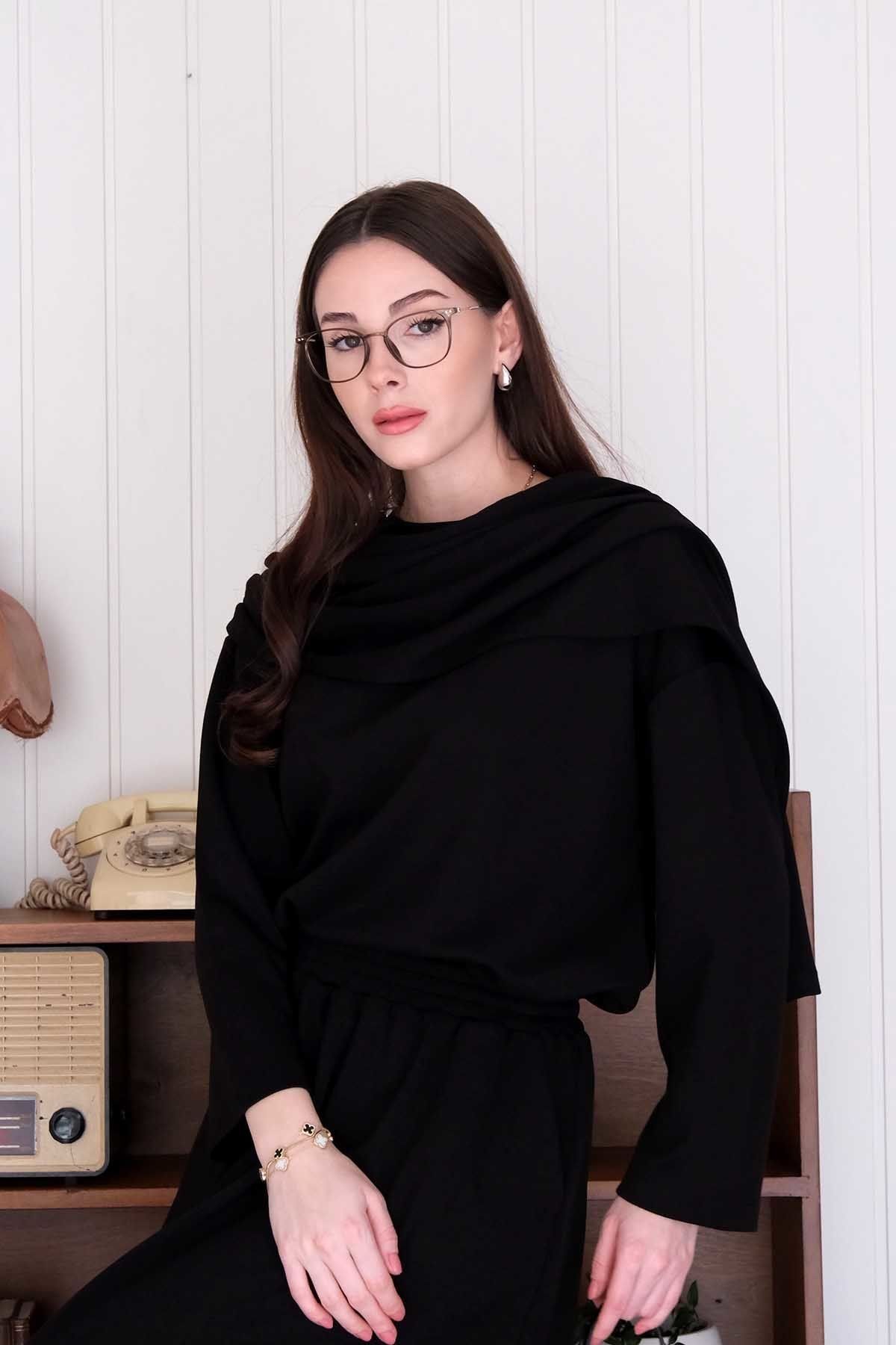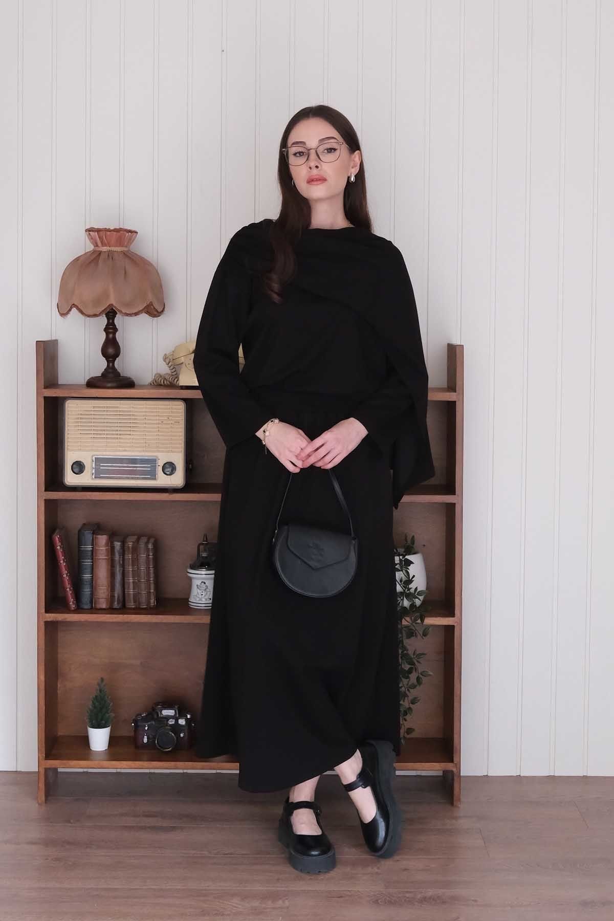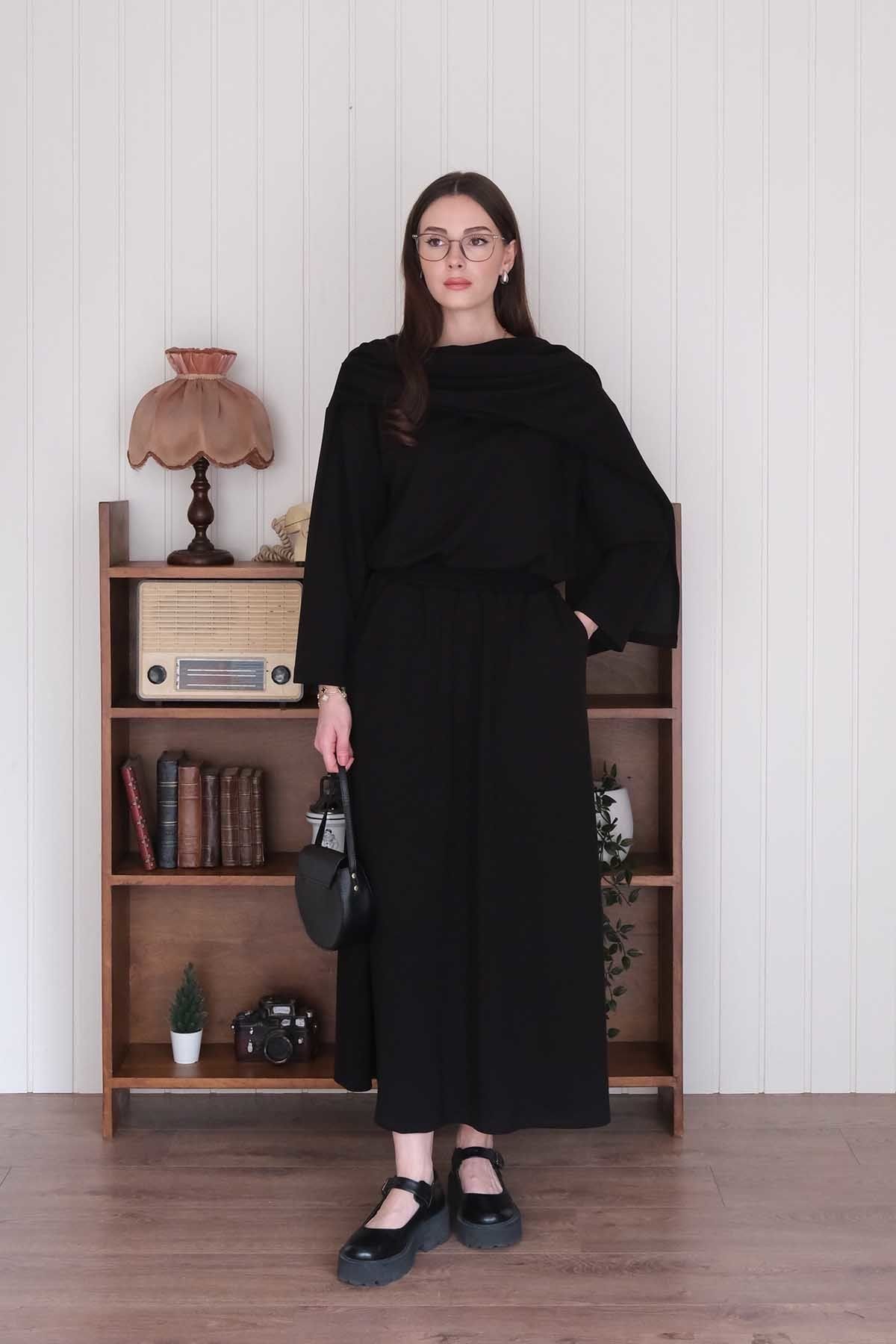 Siyah Oysho Etek & Oysho Atkılı Bluz Takım