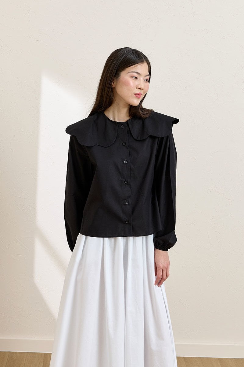 Papatya yakası detayı, feminen bir dokunuş sağlarken kısa kesimi modern bir tarz sunar.