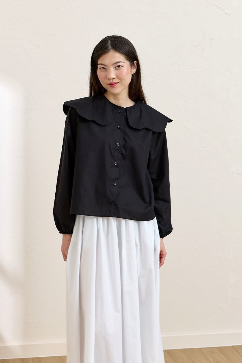 Bu pamuklu crop gömlek, şık ve rahat bir stile sahip.
