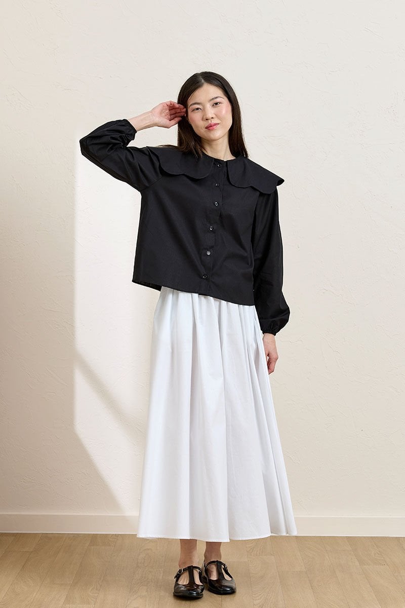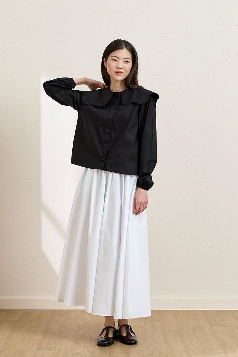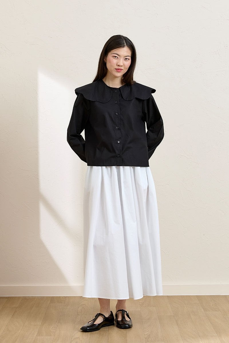 Siyah Papatya Yaka Crop Gömlek & Beyaz Balon Etek