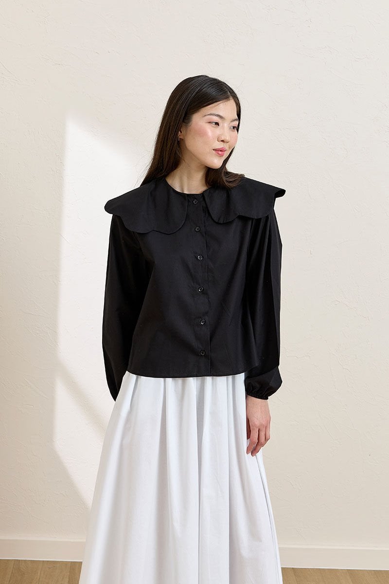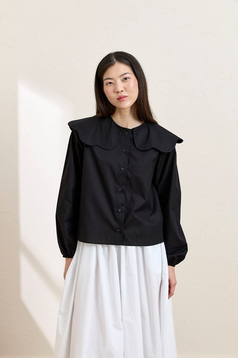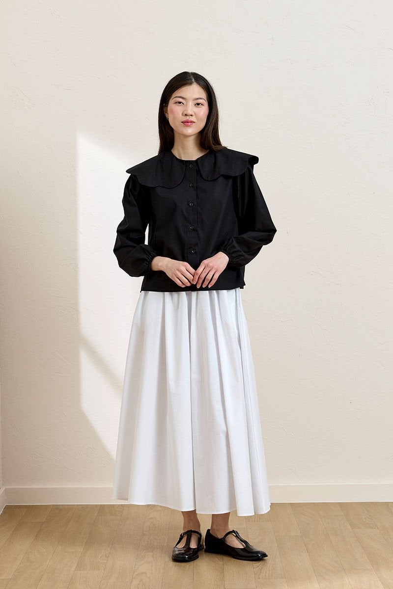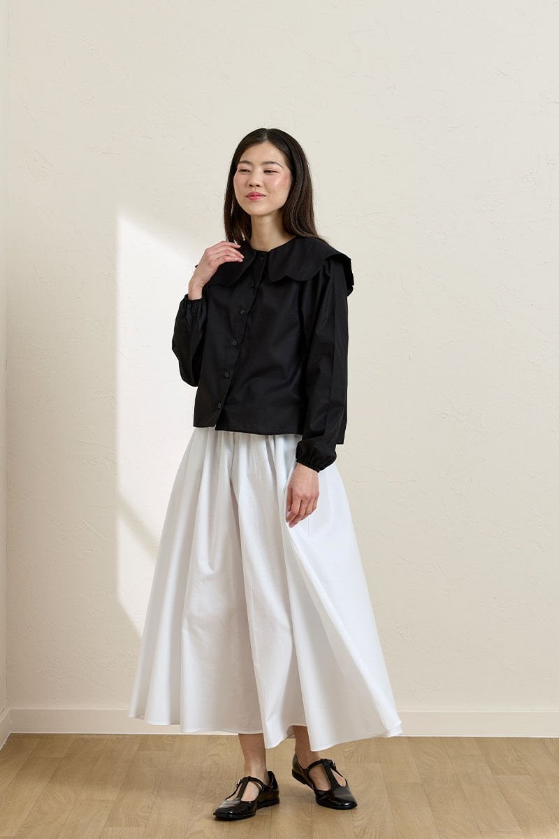 Siyah Papatya Yaka Crop Gömlek & Beyaz Balon Etek