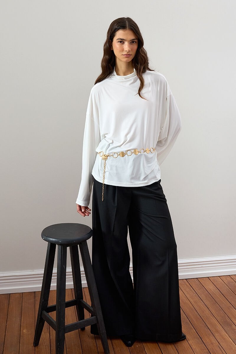 Siyah Pile Detay Palazzo Pantolon
