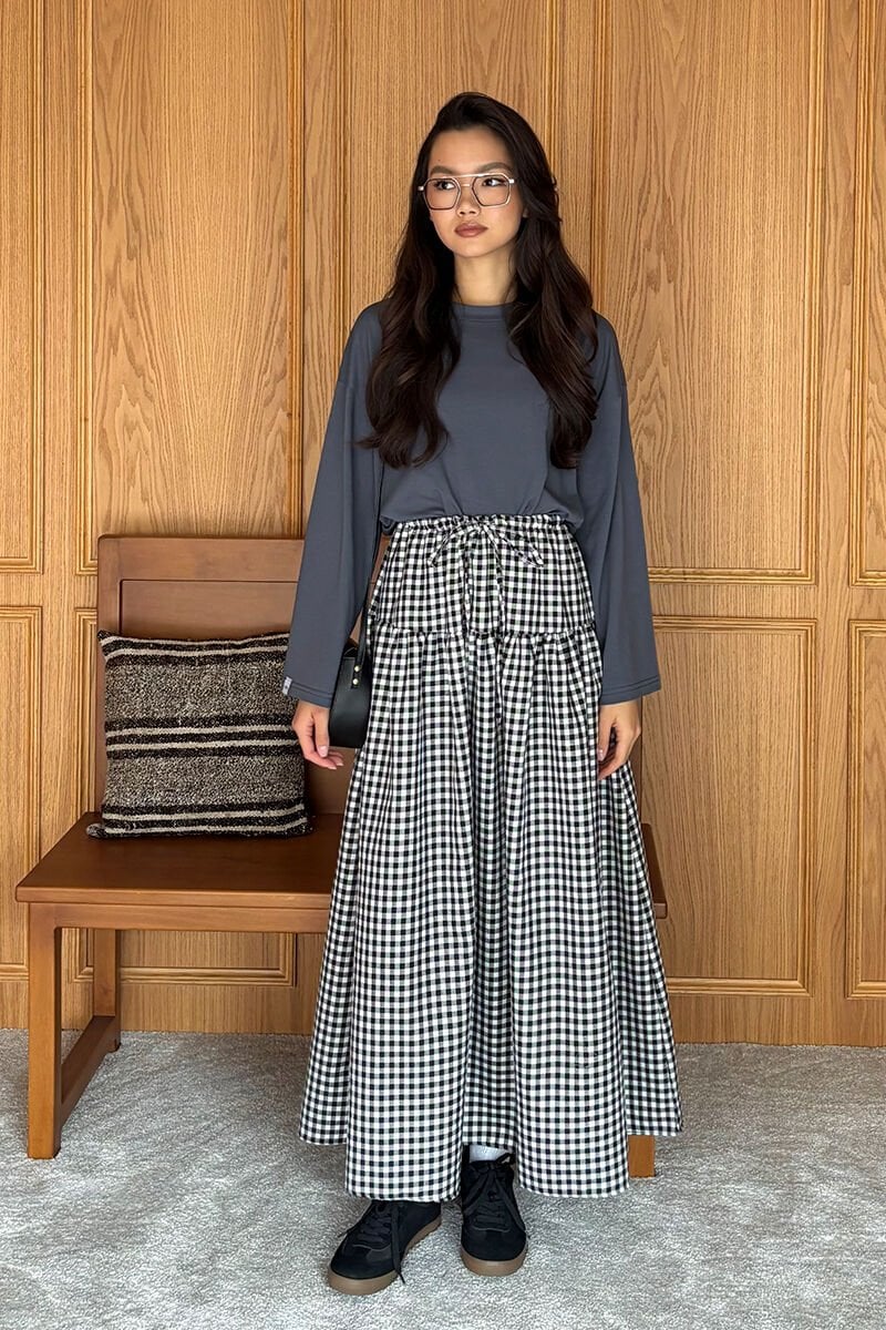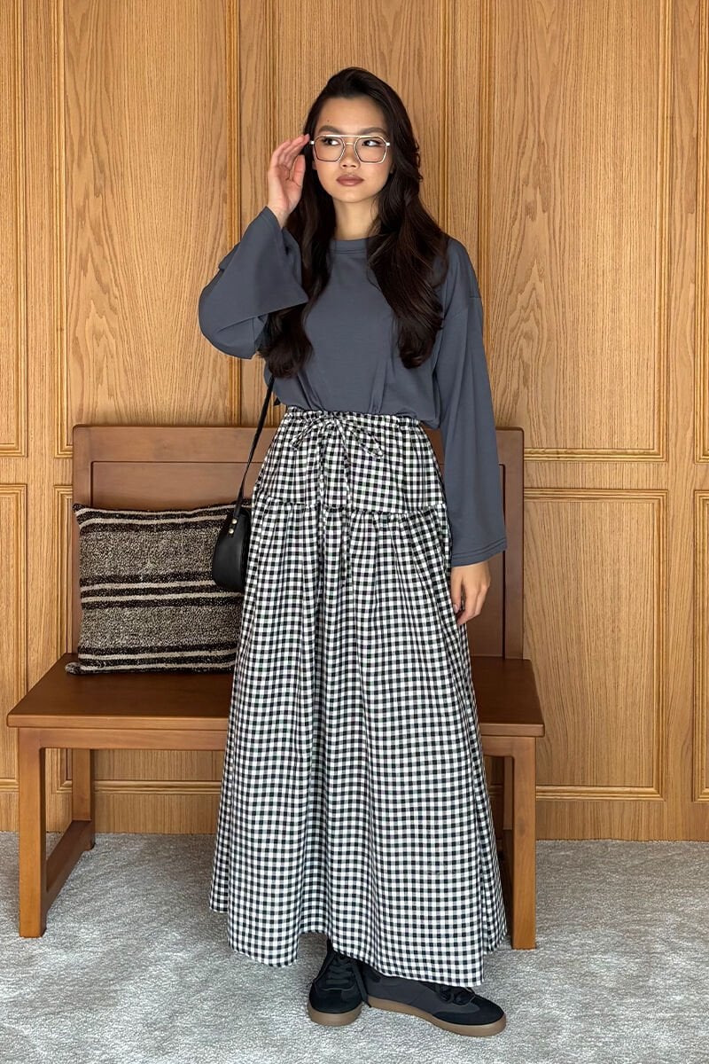 Bu muhteşem kaz ayağı desenli etek, şıklık ve rahatlık arayan kadınlar için ideal bir seçenektir.