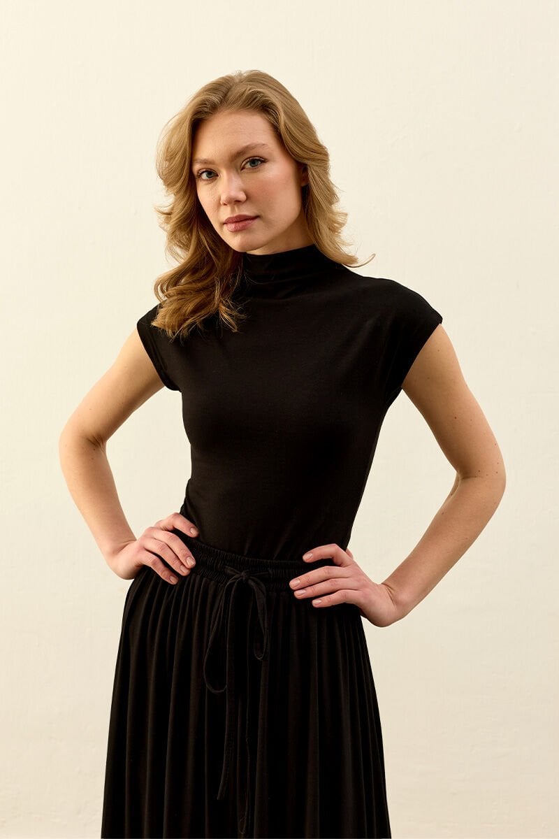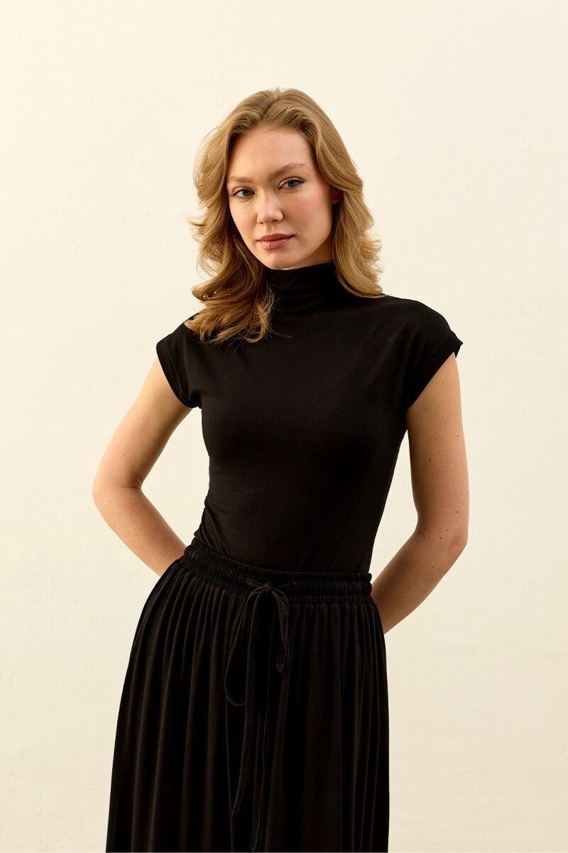 Siyah Viskon T Kol Bluz