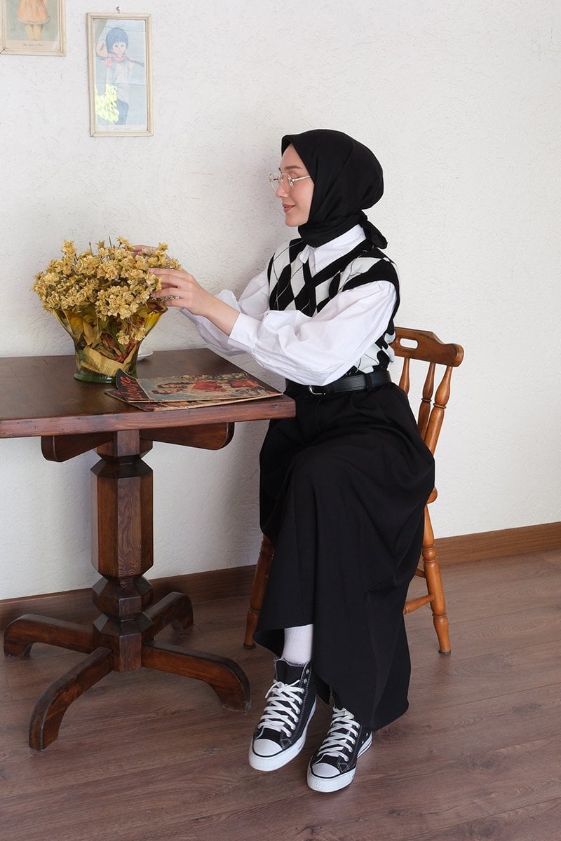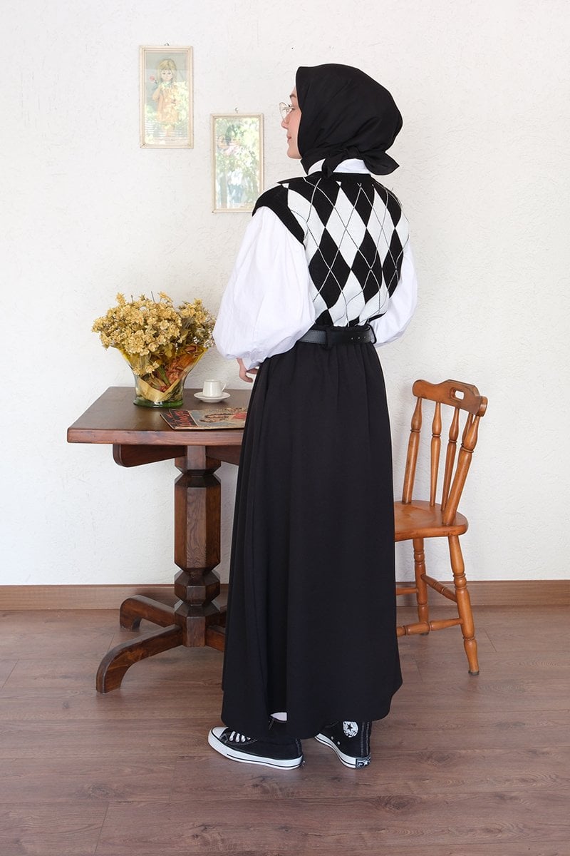 Siyah Krep Tek Düğmeli Etek