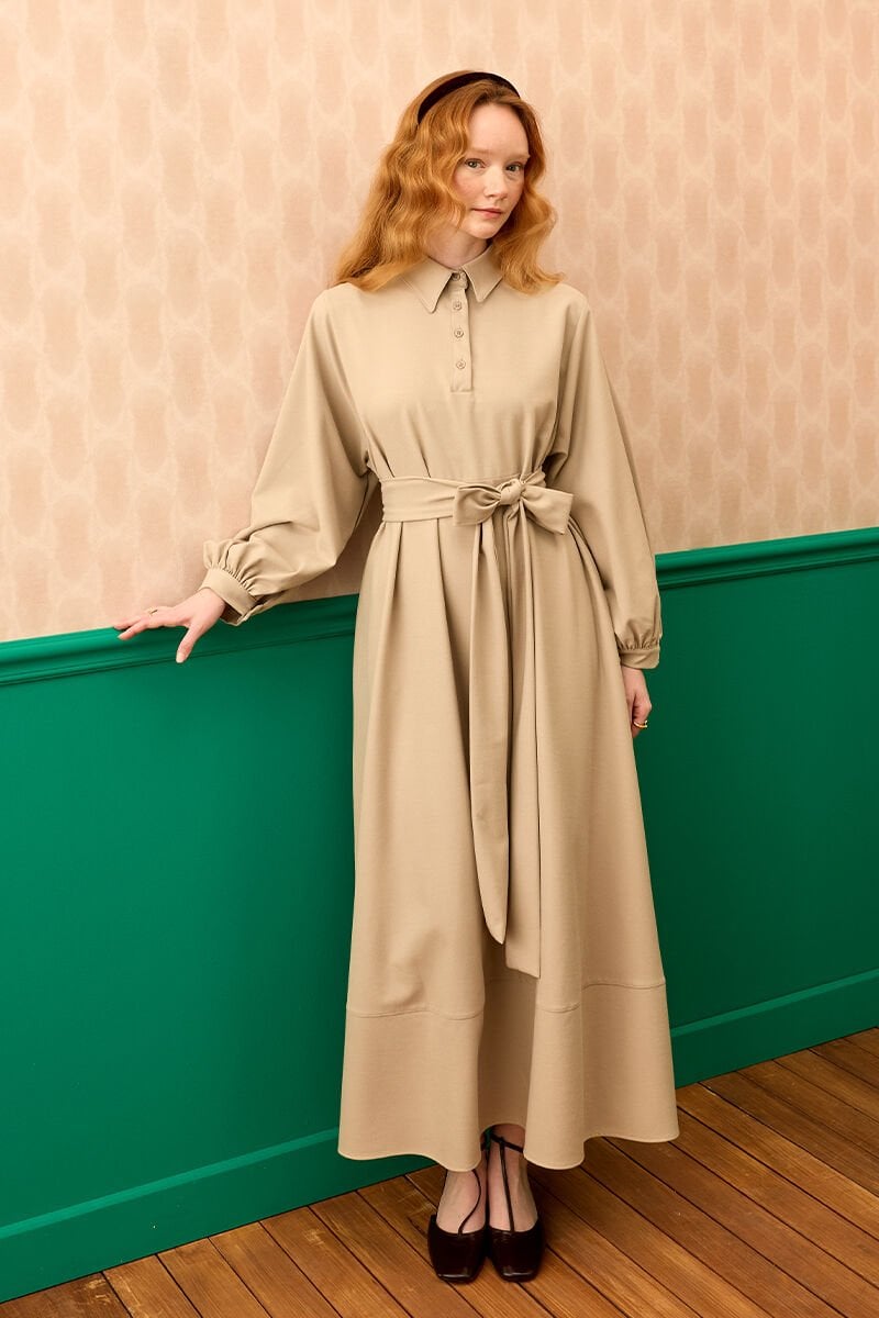 Şık ve zamansız ekose desenli elbisemiz, düğme detaylarıyla dikkat çekiyor.
